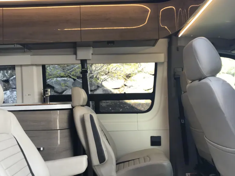 About us: We are a family of 7! Our 5 kids are growing up way to fast! It was time to take advantage of the few summers we get with them. We like to travel, ski, hike & go boating. Of all of the small van-like 24 foot RVs we looked at, you either have seating for 4-8 & sleeping for 2 or you have kiddos sitting straight across the dinning area with their feet hitting each other! We wanted to minimize the chance for a kicking war & aim for family peace! That’s a lofty, mostly unattainable goal, I know! But this Van just might help a little! We traveled comfortably with 3 adults and 4 kids with minimal seating issues! WIN!