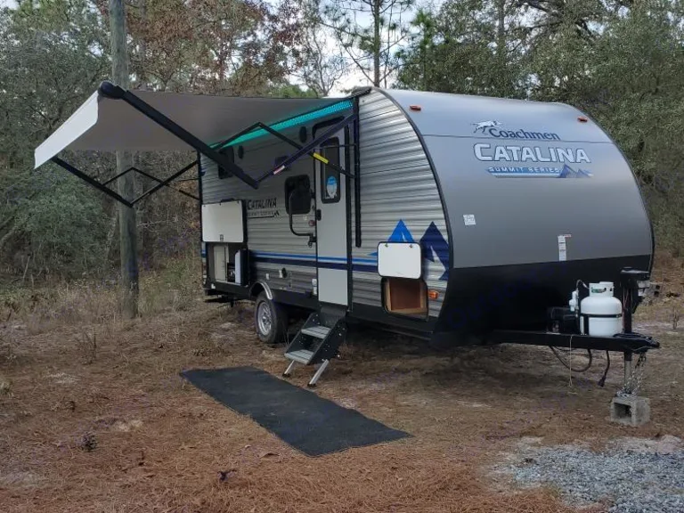 Lightweight, easy tow, outside kitchen, full size fridge, sleeps 6-8, has a Slide Out for more space! Bedroom turns into living room for daytime enjoyment w a Murphy Bed! Fully furnished for all your camping pleasures! Beautiful bathroom w 9speed shower head! Includes toilet paper, soap, fresh towels, sheets, pillows, etc.What's included2x Zero Gravity chairs, outdoor camping table, campfire table, options for multi sized flat screens, memory foam optional. RecommendationsRainbow river, weeki wachee, KP Hole, jenny springs, 3 sisters, crystal river, just to name a few!Other things to noteFREE DELIVERY AVAILABLE FOR RAINBOW RIVER AREA! Delivery available in100 mile radius (including Disney) w few. Pet friendly w fee. 2 day minimum. Cleaning deposit reimbursed if returned in same clean condition! No smoking inside.