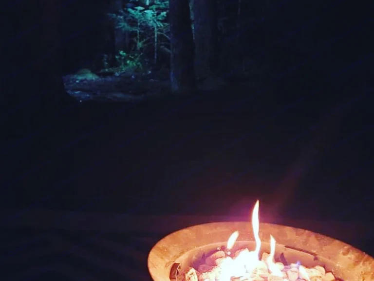 Propane gas fire pit. Includes extra propane tank.