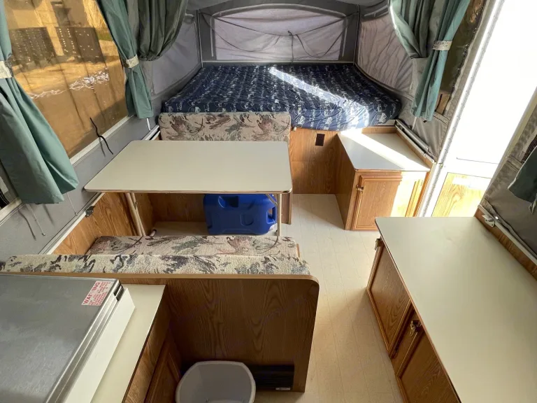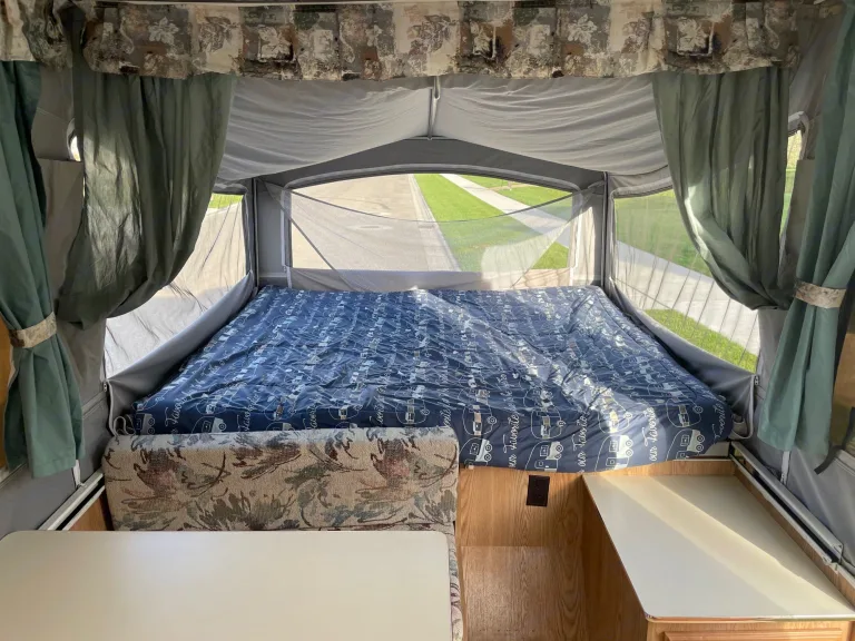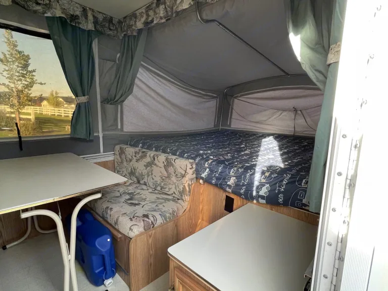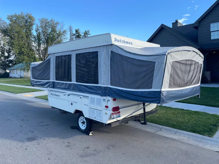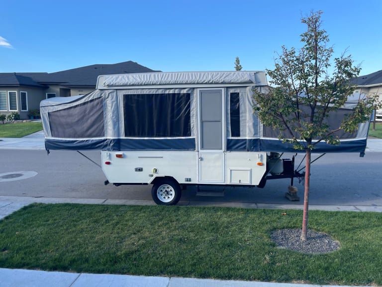 *Set-up and Take-down videos are available for you!Super clean! Lightweight in great condition. Setup is a snap and campers are provided with colorful setup guides both written and video so, even rookies can get it popped up and ready to relax in no time. New tires. New RV/Marine battery. Pulls great!It's the perfect camper for people who like actually camping. Or maybe you're just ready to get up off the ground but don't want to feel like you're in your living room. No satellite dishes, air conditioning, or microwaves for you. Just 360 degrees of nature and, maybe, the smell of bacon in the morning on the camp stove. "It's cute, too," as a renter said recently.If you're a "get-back-to-camping basics" outdoorsperson, you'll be right at home with this cute and classic camper beneath the high trees of a state park, the open prairie of Idaho High Desert, or the driveway next to your family cabin because you can only stand them for so long and just need a place to get away! :)There are two outlets to keep your smartphone charged (shore power at campsite required). Bumper jacks help to settle rocking back and forth when moving around inside. Delivery is available. And the camper is ozone sanitized constantly.Two large bunks provide queen and full-sized accommodations. A "sofa" pulls out for an additional sleeping area and a table conversion with two seats provides yet another.Help by text is available constantly during your trip if you are within cell range.Important: Due to high demand and time needed to clean, prep and flip the trailer between rentals, the pick-up time is no earlier than 3pm and drop off not later than 1pm. If you need the trailer earlier than 3pm then it is recommended to book it for the day before your actual trip to be sure to have it in time.What's includedFresh linens (upon request), 2 camp chairs, kitchen kit (bowls, spoons, napkins, plates, etc)Has:- 3 burner cooktop stove; for inside or outside use