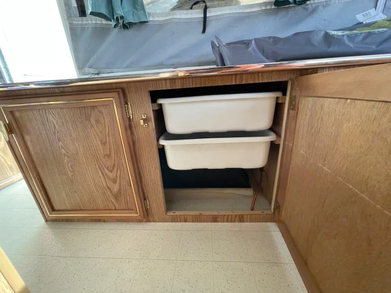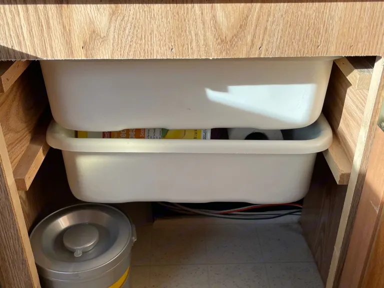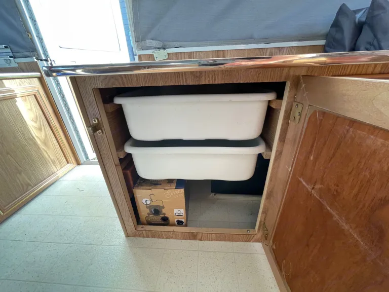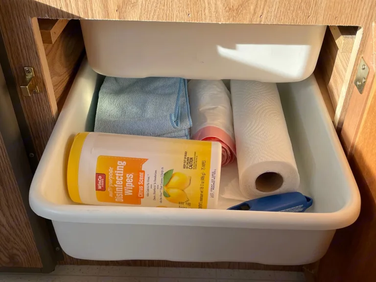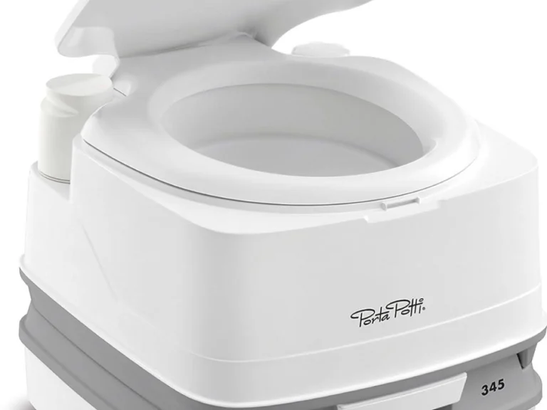 Portable RV toilet with a sealed waste water basin. Additional fee if more sanitation is needed post-trip.