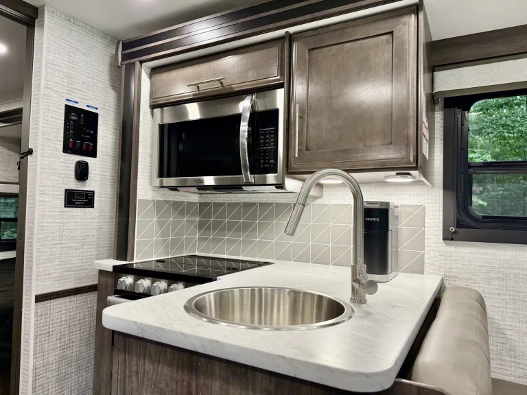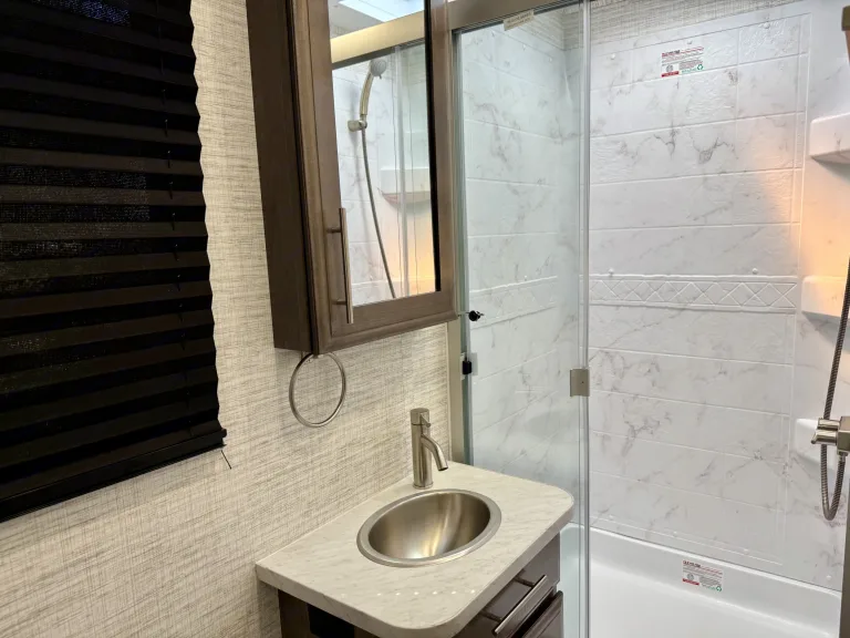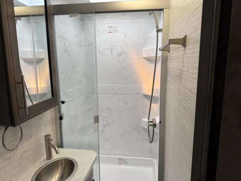 • Full bathroom with shower so you never have to rely on campground bathhouses.