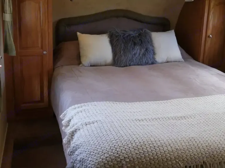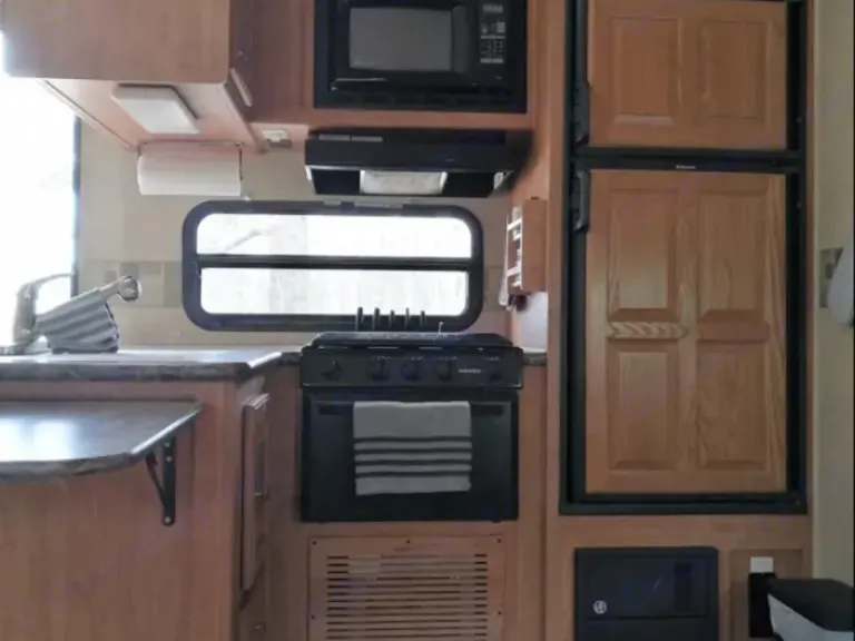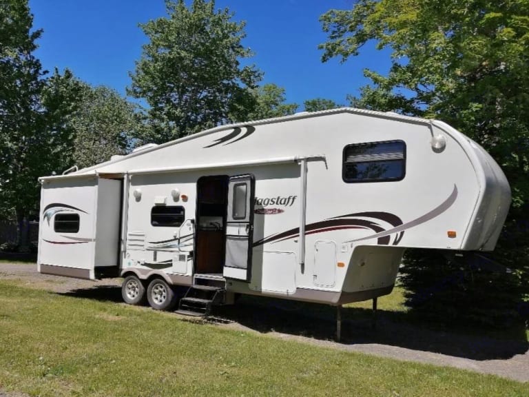 We deliver to your destination! Our RV is a roomy and comfortable 5th-wheel with TWO bathrooms and a bunkroom!! Great for a family with kids or couples who just want to get away. Your home away from home includes an outside BBQ and outdoor shower for those sandy trips, a nice queen-sized bed in the master, a queen-sized fold-out sofa in the main living area with a built-in air mattress, a dinette table that converts to a double bed, a bunkroom with a double-sized fold-down couch and a twin bunk up top. The bunkroom has its own half bath with a toilet and sink. Very handy!!The trailer is stocked with bedding, towels, dishes, cleaning supplies, countertop appliances, tea, coffee, etc. Please bring your own refrigerated items. There is also a washer toss game and camping chairs in the outdoor storage bunkie.The perfect camper for your perfect trip!