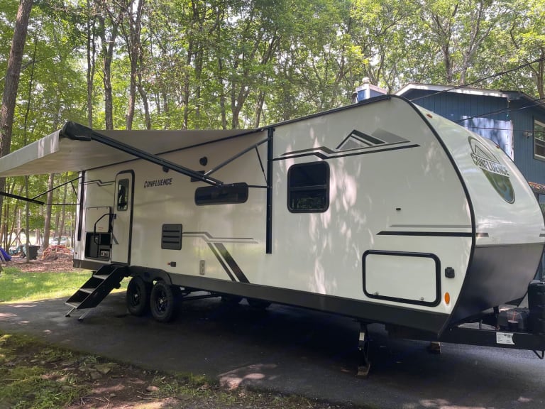 Welcome to your ultimate outdoor adventure! Introducing our stunning 2022 KZ Confluence, a top-of-the-line RV designed to make your travel dreams come true. Get ready to embark on a journey filled with comfort, convenience, and unforgettable memories.Step inside and be greeted by a thoughtfully designed living space. The open floor plan provides ample room for relaxation, entertaining, and enjoying quality time with your loved ones. Sink into the plush seating in the cozy lounge area, where you can unwind after a day of exploration.The fully equipped kitchen is a culinary enthusiast's dream. Boasting state-of-the-art appliances, including a refrigerator, stove, oven, and microwave, it allows you to prepare delicious meals with ease. The generous countertop space provides room for meal preparation, and the ample storage ensures you can bring all your favorite ingredients along for the journey.The master bedroom features a luxurious queen-size bed, while the additional sleeping areas, including convertible dinette and sleeper sofa, offer versatility and convenience. (Accommodates up to 8)The bathroom is designed to provide all the comforts of home. With a spacious shower, toilet, and sink, you'll have everything you need to freshen up and start each day feeling rejuvenated.Equipped with modern amenities, such as air conditioning and heating, you can enjoy the perfect indoor climate regardless of the weather outside. Stay entertained with the entertainment center, complete with a flat-screen TV and a sound system, perfect for movie nights or catching up on your favorite shows.Renting our 2022 KZ Confluence promises an unforgettable journey, with the freedom to explore the great outdoors at your own pace. Whether you're planning a weekend getaway or an extended road trip, this RV is the perfect companion for your travel aspirations.Book your adventure today and make memories that will last a lifetime with our exceptional 2022 KZ Confluence.What's includedWe will include...