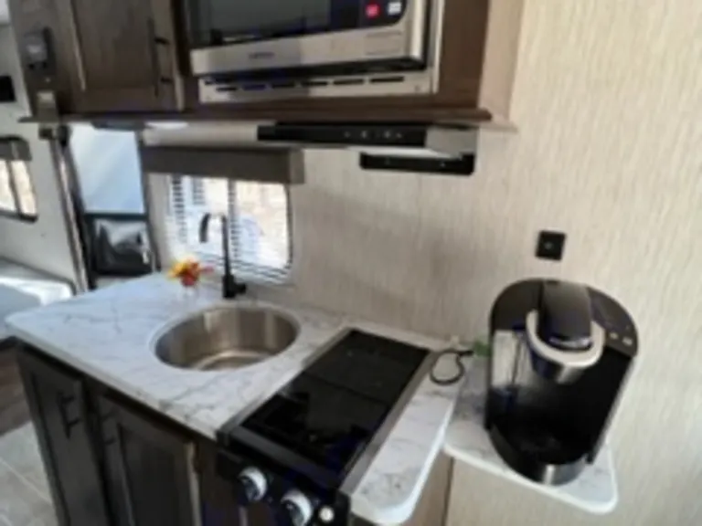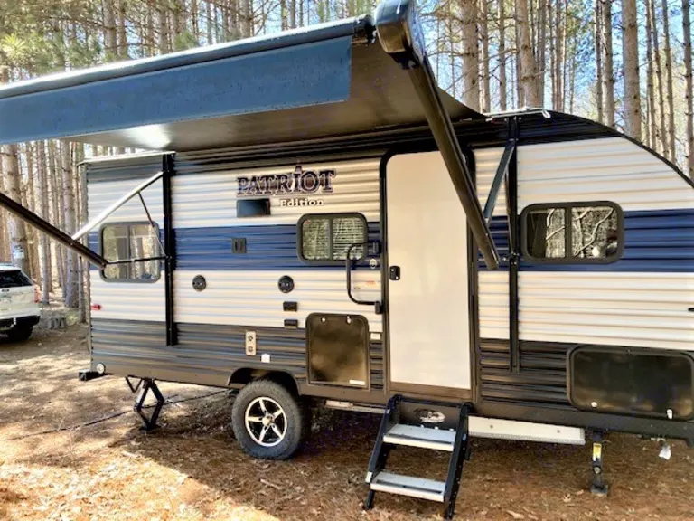 This compact floor plan offers panoramic view windows surrounding the rear dinette, and a galley kitchen across from the large bath with angle shower reside in the center of the trailer. The front queen bed with cabinets above offer plenty of storage for weekend get-a-ways. Inside includes a flush mount glass cook top, huge sink, ample counter space, and 10.3 cu.ft. double door refrigerator. Outside find a full size power awning, outside mini-refrigerator, RV quick connect, MORryde stable step, LED lighting, and moreWhat's includedLinens, camping chairs, fold up table, all kitchenware, pans, and utensils, microwave, stove, refrigerator, Kuerig coffee maker with K-cups included, propane grill.RecommendationsWe enjoy Lax Lake Resort on the North Shore, Eagle Cliff in Lanseboro, MN, and Haycreek Campground in Red Wing, MN.We also love the St. Croix River for kayaking and fishing. There are several campgrounds including the St. Croix Campground.Other things to noteMust return with emptied dump (gray/black water), $100 fee if not emptied.We love dogs, and we welcome you to bring your companion. We don't allow cats due to allergies.Please use our trailer like it is your own as it's like new inside and out and please enjoy it fully.Please no smoking in our trailer.