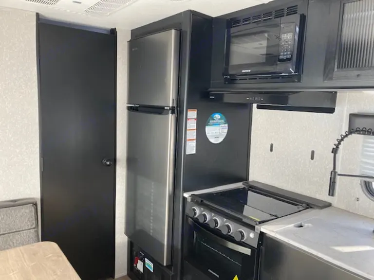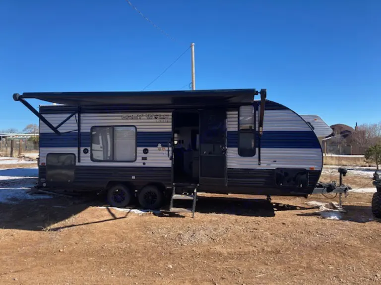 Lightweight, easy to pull travel trailer. Comes with electric awning and outdoor gas burners for outdoor cooking. Electric jack to simplify loading trailer. Outdoor and indoor shower. Air conditioning. TV. Icemaker. Outdoor refrigerator.What's includedTrailer comes with linens, pillows, and towels. Basic cooking utensils included silverware, pots and pans. Toilet paper included. Four camping chairs.Recommendations.Other things to note.