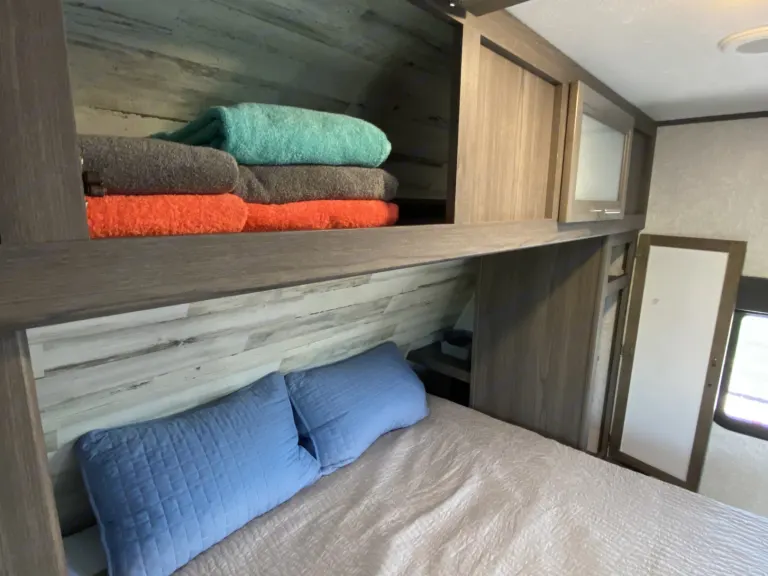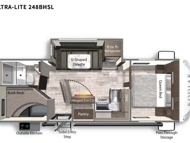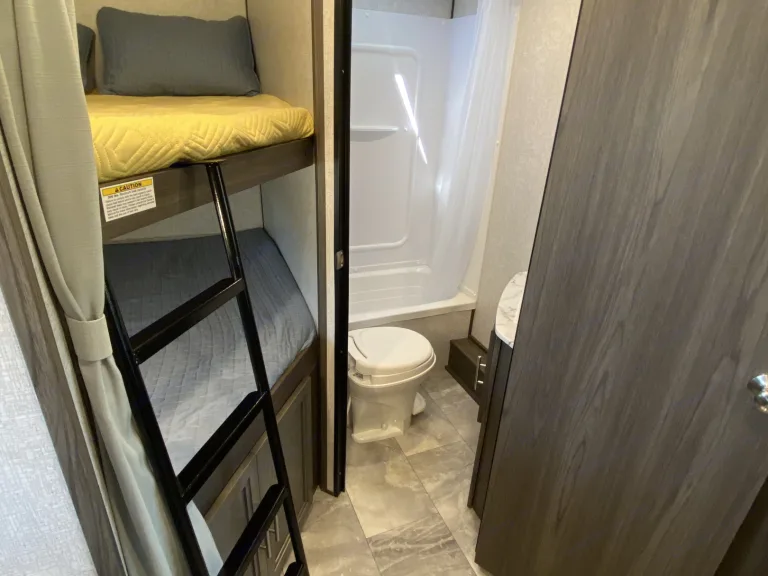 This towable RV is the Kodiak Ultra-Lite 248Bhsl (Bunkhouse) with one slide. This RV is towable with any ½ ton truck or full-size SUV. The weight is 5320lbs and length is 28’11”. I will provide a 2 5/16 ball hitch or weight distribution hitch. 7 pin wiring harness and brake controller are required.Bunks are full size double bunks which can easily sleep two children each. U-shaped dinette can fold down into another full-size bed and adults can enjoy a full-size queen mattress with memory foam topper and a door to their own bedroom. Inside you will find a large 12v/120v refrigerator, 3 burner gas cooktop with oven, stainless steel farm sink, 40inch smart TV, and indoor/outdoor Bluetooth stereo system. This is a 30amp RV with AC and Heat.Outside you will find an outdoor refrigerator with an attachable flat top griddle and a 20ft power awning, pass through storage on the front, and dual propane tanks. No need to break out in a sweat setting up this unit, as it has an electric power hitch and electric power stabilizers. Having trouble booking? Try alternate listing on Rvshare.Delivery and Service Fees: