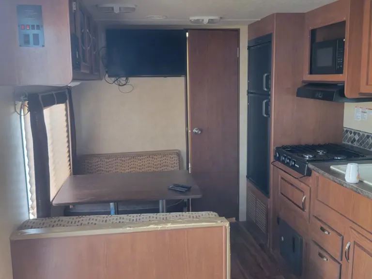The 241Qbxl is a lightweight travel trailer with a spacious rear bath and front queen bed. The kitchen is well-appointed with modern appliances and an oversized 11 CU. FT. refrigerator, dinette, and Large cabinets. The trailer also features a huge campsite window! Exterior speakers with exterior led light for visibility. What's includedThis single-owner 2015 Wildwood X-Lite 241QBXL has many features packed into a 1/2 ton towable travel trailer. Nicely appointed, with a forward queen bed, and open floorplan, you'll find features like a dinette sleeper, sleeper sofa, and a compact kitchen. It is in great condition. Just the leather is peeling off the sofa, but i have a sofa cover Over it which makes not noticeable. RecommendationsQuick note: Treat the RV as it is your own.