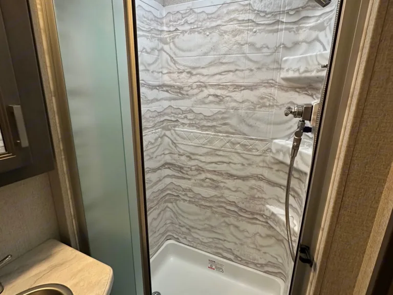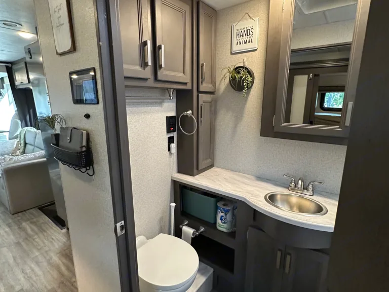The thing to keep in mind is the single bathroom, and the size of the grey tank. If you’re camping at a full hookup site, less of a concern.