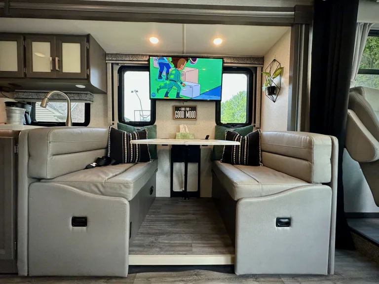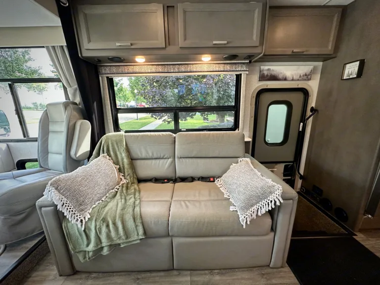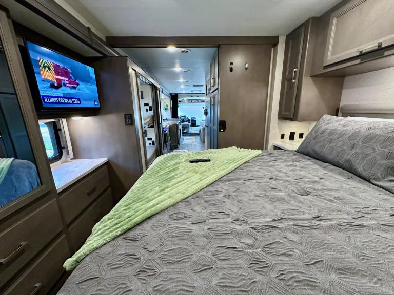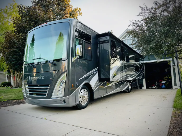 Meet our 2023 Thor Luminate BB35, a 37-foot Class A motorhome built for comfort and adventure. It sleeps up to 10 (tightly) with a king bed, hallway bunks(Limit 250lbs), drop-down bunk (Limit 500lbs), sleeper sofa, and convertible dinette.The kitchen is fully equipped with a residential fridge, gas stove, oven, microwave, sink, and coffee maker, everything you need to cook on the go. The full bathroom includes a shower door, generous storage, and a tankless water heater for endless hot water (when fully hooked up and the grey tank is open).The gray and black tanks hold 40 gallons each, which can fill up fast without sewer hookups. If you're not at a full-hookup site, we recommend brief showers and light water use to extend your stay comfortably.Enjoy three TVs inside, one outside, a powered awning with LED lighting, and a generator for off-grid camping. Driving is comfortable with the Ford V8 chassis, backup and side-view cameras, and automatic leveling jacks.Perfect for families, couples, or anyone chasing great views and good times. If you have any questions, we’re happy to help make your trip awesome.What's included• Toaster