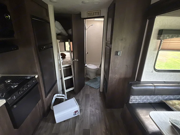 Linens included, fully stocked kitchen. Would be willing to deliver and set up for you. Feel free to bring your doggos. The camper is very comfortable. We will bring it to the Outer Banks. Sleeps 8 people comfortably with a queen bed, full size bunk beds and a table that converts to another bed. Comes with a portable propane grill and outside refrigerator, shower and sink. Also, has a new 6 foot table for outside to use.RecommendationsWe live close to the Outer Banks and would love to deliver and set up for you. Can only deliver and set up on Saturday or Sunday.