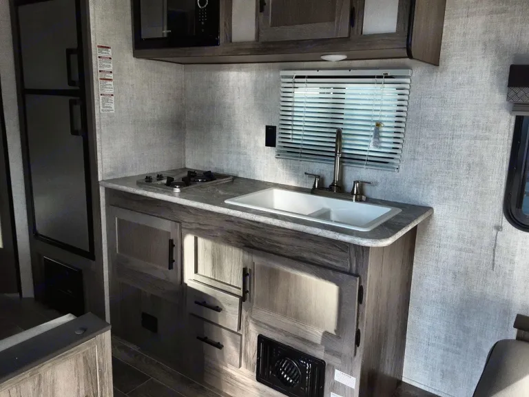 This 2022 is perfect for the small family, sleeps upto 6 guests and will allow room in your campsite for out door living! This unit has everything you need, fridge, stove top ( BBQ would be reccomened) AC, Sterio,Bathroom with shower.What's includedIncluded: