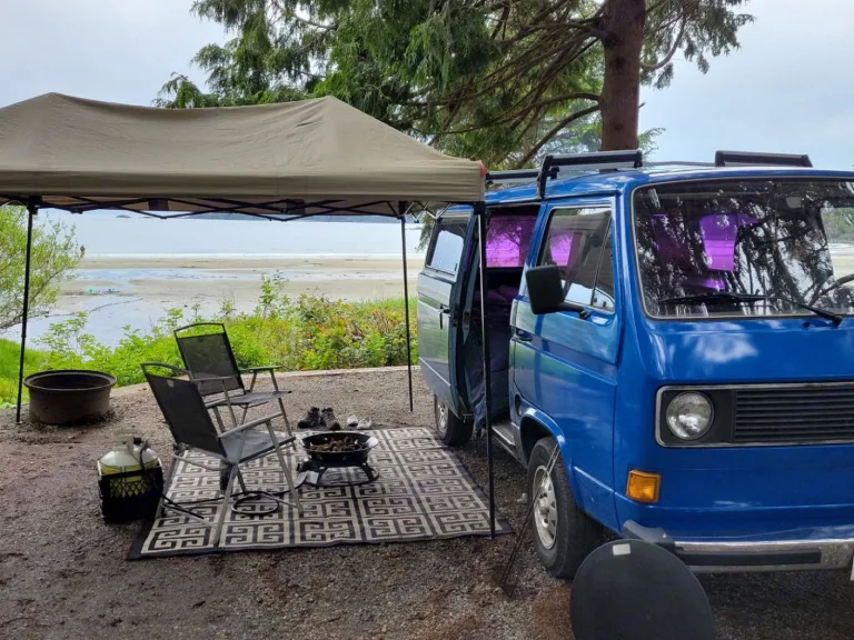 Propane fire pitRecommendationsThis van has a strict Sooke to Sidney boundary due to its vintage age. Long hills and excessive driving don’t fare well for her but there are amazing campgrounds within her boundary, (proof of reservation required before pickup, $500 penalty if taken outside the boundary) Recommended campsites; Goldstream Park, Island View beach, Pedder Bay Marina, Sooke River Campground (not the potholes)