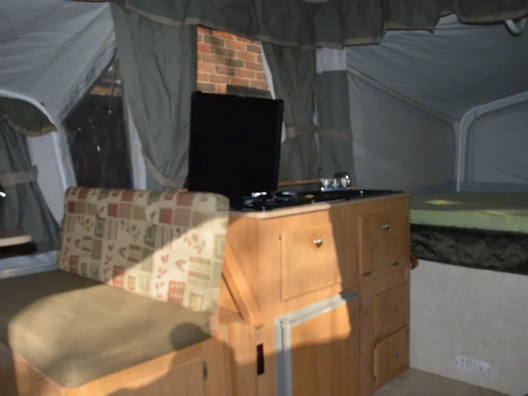 Glamping at its finest. All the luxuries of home. This impeccably maintained 2007 Fleetwood Utah tent trailer. Shows like new. Opens to 25 feet long. Add-a-room available to close in the awning during buggy season. This trailer has a 12 foot box when closed. The trailer tows very well. The trailer comes with well equipped kitchen such as dish clothes, dish towels, pots, pans, dishes, glasses and cutlery. We also have an exterior barbecue and stove which hooks up to the trailer propane supply, generator if needed, dry fire wood which can be arranged upon pick up, 4 camping chairs, Thule box and 3 bike racks. There are electric brakes on the trailer which have the controller on the trailer. You do not need to have the electric brake switch in your vehicle. 7 pin connection for the trailer is needed. All this is available upon pick up as a one stop shop. Just pick up the trailer and enjoy. We would like to make your vacation as easy and enjoyable as possible. If you have any problems or questions, we are available by text or phone to provide any support needed about the trailer. Enjoy creating memories with friends and family in the great outdoors.What's includedThe extras that come with the trailer are 4 camping chairs, Outdoor mat which covers under the whole awning, exterior barbecue which hooks to the trailer, Solar panel to top up the battery, mini lanterns (3) and well equipped kitchen and cleaning supplies. Linens and pillows not included.Other things to noteWe can provide dry firewood at an extra cost. Pet friendly, no festival or tailgating.