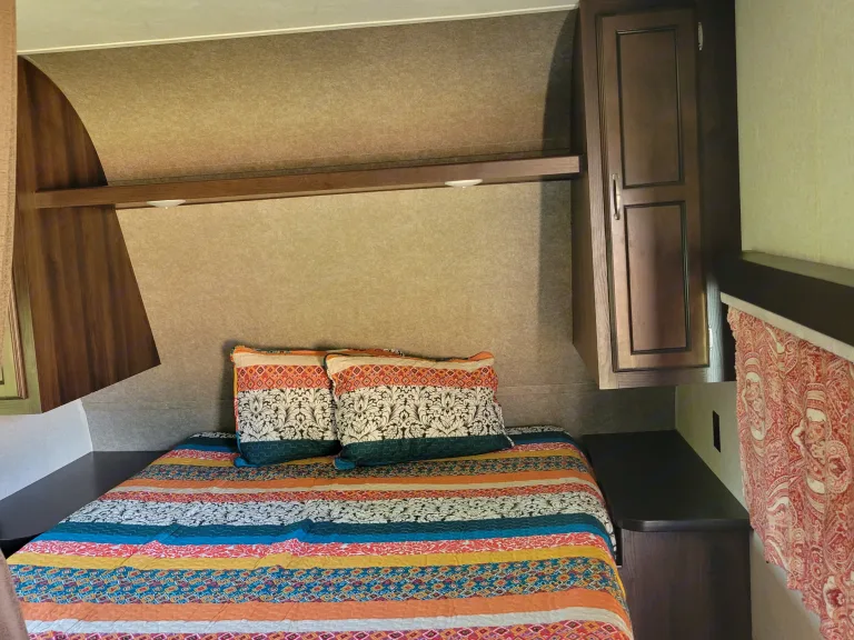 JJ is a 2018 travel trailer, perfect size for a couple's getaway or a small family vacation. JJ features a comfy queen-sized bed with storage cabinets above and storage under the bed. The living area has a fold out couch and the dinette converts to a bed as well, which are great for small children if traveling as a family. The original bunks have been removed out of this model for additional closet space, but we have replaced with one twin size memory foam mattress on a platform. Note: it would also be a great spot for a pack & play if traveling with a baby, or dog crate if traveling with a furry friend! JJ is equipped with a refrigerator, microwave, stove/oven, sink, a/c and heat, and hot water heater system. Storage space underneath to stow any additional adventure gear.JJ is perfect for your next adventure. What's includedIf you are traveling local within the Central Florida area and you do not have a tow vehicle, we would be happy to deliver JJ to the campground you have reserved for a reasonable delivery & setup fee. Delivery and pickup within a 75 mile radius.Bed linens, basic cookware, dishes, cups and utensils are included.RecommendationsThe Campgrounds at Disney's Fort Wilderness Resort is such a fun experience for the family and there are so many beautiful Florida State Parks and Florida Springs to choose from nearby to experience "Real Florida".We have gone all over Florida (Okaloosa Island/Destin area, Key Largo, Tarpon Springs, Cocoa Beach/Kennedy Space Center, Beverly Beach on the coast in Flagler County, Ochlockonee River State Park, St. Augustine, and coastal Georgia (Tybee Island and Jekyll Island) with our other rig. So many awesome memories made together.