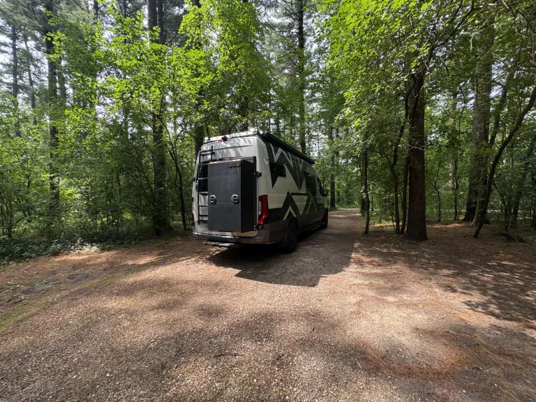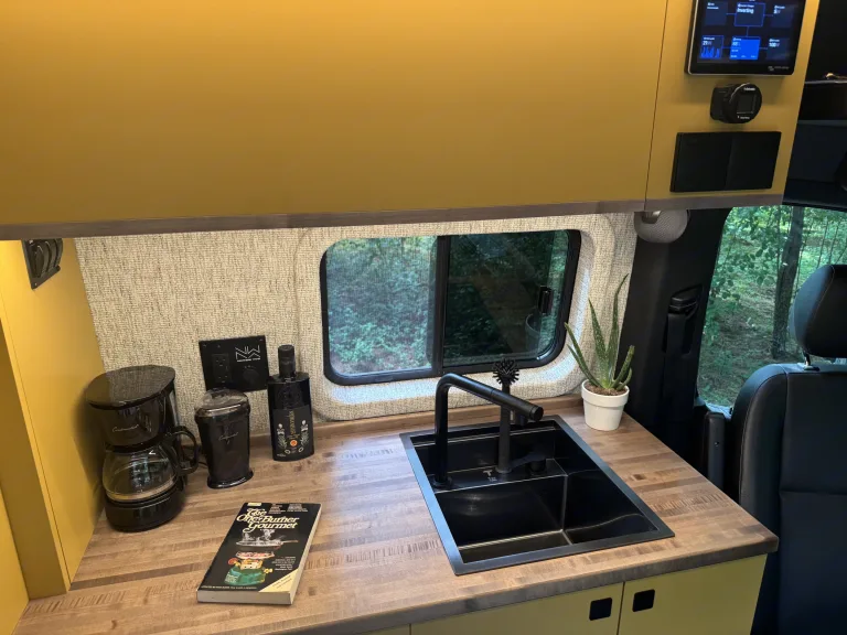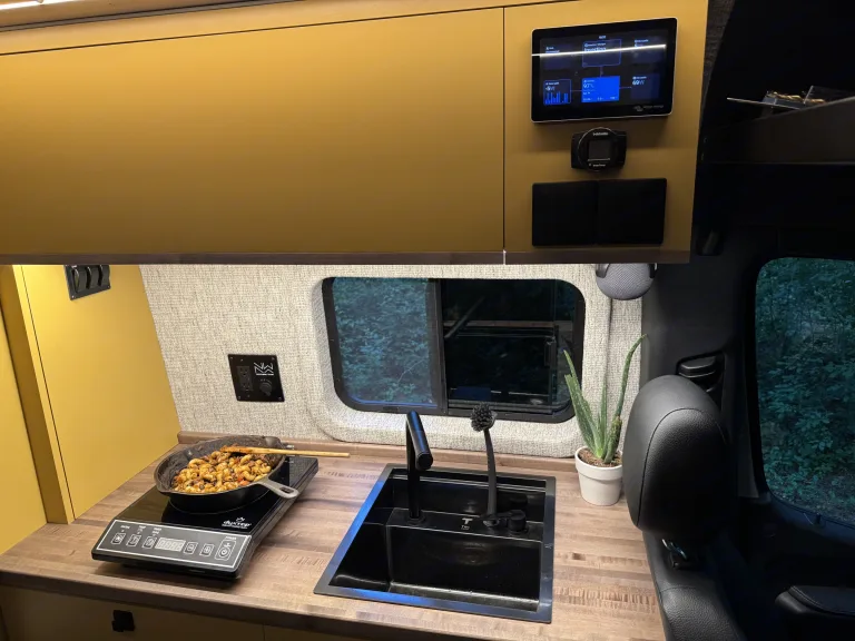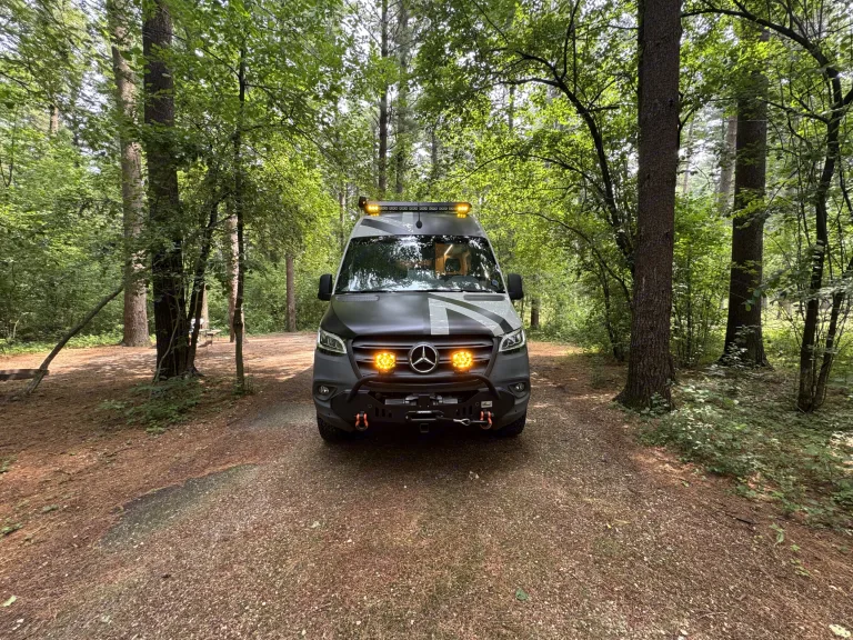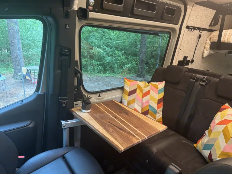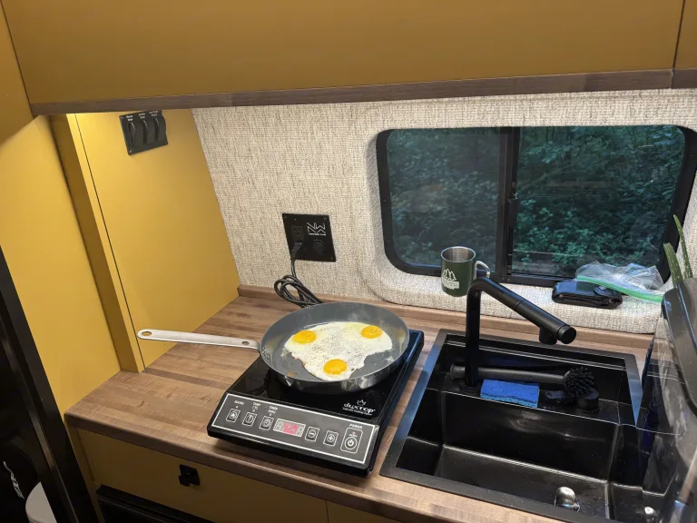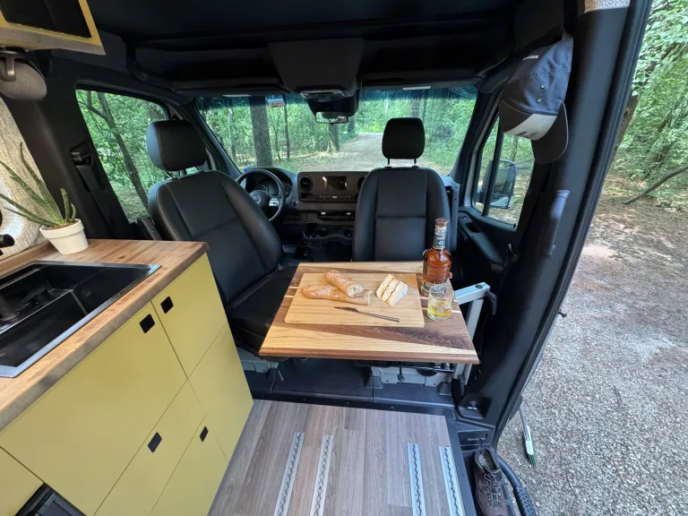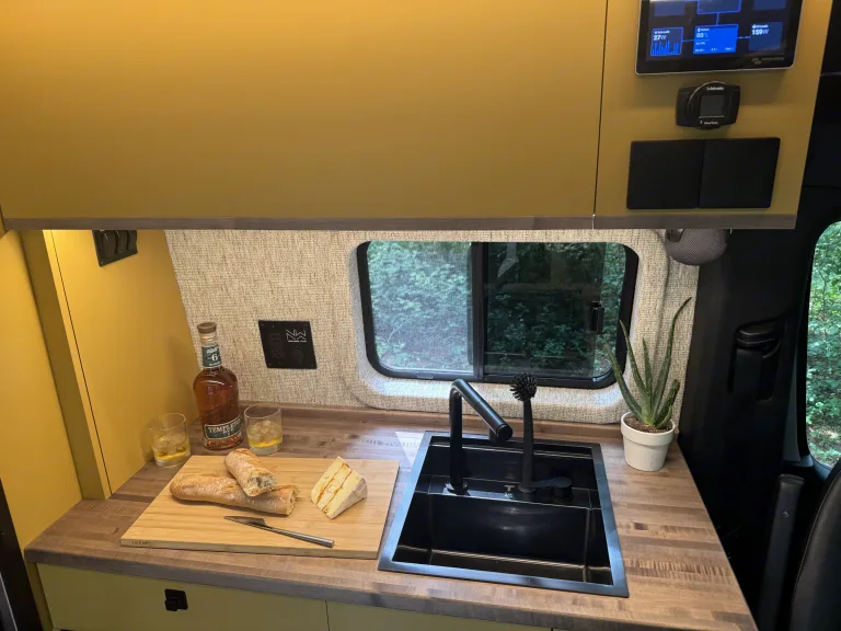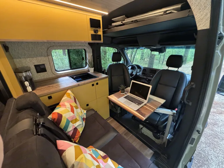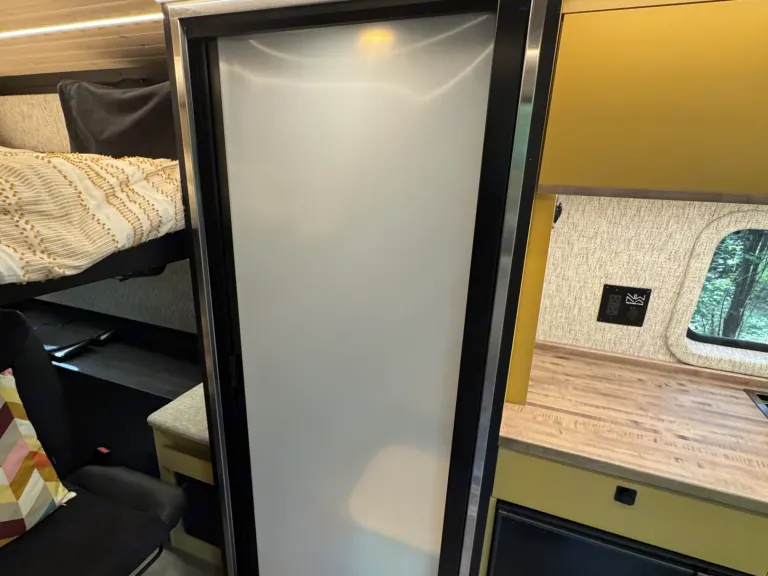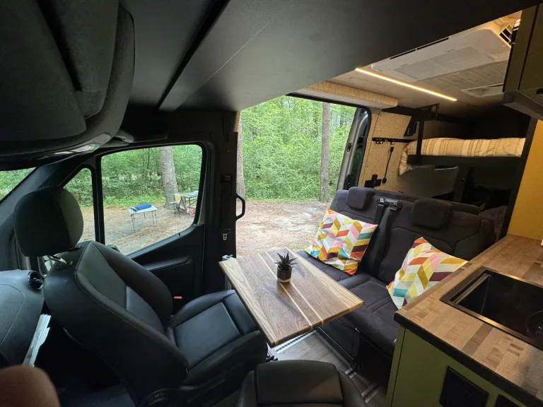 "NoWhere Vans Huron" was custom made by NoWhere Vans in Elkhorn, Wisconsin as their demo van so it includes every feature they offer in a custom van.The Huron seats 4 with certified seatbelts and sleeps 4 on one queen-size powered-lift bed and one double-size bed that transforms from the rear seat. The queen size bed has a front to back orientation instead of across that accommodates taller people. There are magnetic window coverings for all the windows, including the front windshield and cab windows for complete privacy.There is a built-in shower with hot water and composting toilet which eliminates the smell and the hassle of emptying a sewage tank. The water system includes a 20-gallon fresh water tank and a 15-gallon grey water tank.The kitchen area has a convection cooktop that stores away for more counter space, a nice sized sink and refrigerator, and lots of storage. The fronts seats swivel around and the back seats can move forward to create a cozy dining space for 4 with a reclaimed wood table top.The Huron has a fantastic solar/battery system that powers the rooftop AC, LED lighting, AC power outlets, USB power outlets, and roof vent fan. The solar system is backed up by a shore power connection and also charges off the engine while you're driving. There is a central control screen that shows the battery power status, tank levels, and more. The Webasto heater keeps the van warm on cold days or nights and runs off the diesel fuel tank. A WeBoost antenna enhances cell signals to keep you connected. The powered awning expands the useable space and includes LED lighting for covered evening activities.The lighted gear area under the lift bed has plenty of room for your gear and built-in L-Track to secure everything in place. It can also accommodate 4 bikes (ask for the bike mounts when renting) or bring your own 2" hitch mounted bike rack. Additional gear storage is provided in the locking exterior storage box mounted to the passenger side rear door. The van has a built-in air compressor with a quick-connect under the rear bumper and hoses and attachments to pump up your bike tires or stand-up paddle board.The Huron is based on the Mercedes-Benz Sprinter 170 Wheelbase van and comes with Apple Car Play, heated driver's and front passenger's seats, blind spot monitor, driver attention monitor, power folding exterior mirrors, cruise control, and a upgraded audio system by NoWhere Vans. Parking is easy with the 360 degree cameras and proximity sensors to warn you if you're getting close to anything.We'll also provide all the necessities to make your trip great, including kitchen items like plates, bowls, cups, drink ware, pots and pans, utensils, kitchen towels, dish washing supplies, sharp knives, and a coffee machine, bean grinder, and espresso maker! Bed linens, bath towels, toilet paper, and a spare composting material bag for the toilet (just in case). We can also include a two burner camp stove and camp table for outside cooking only (just ask when renting).When you rent from us, we'll provide a full orientation session before you start your adventure. Other things to noteNo smoking inside the van, please and thank you!