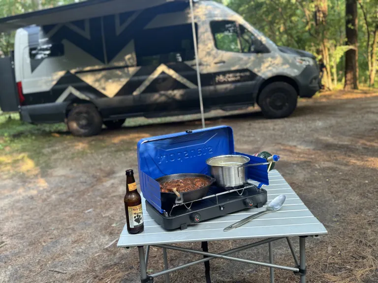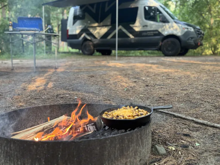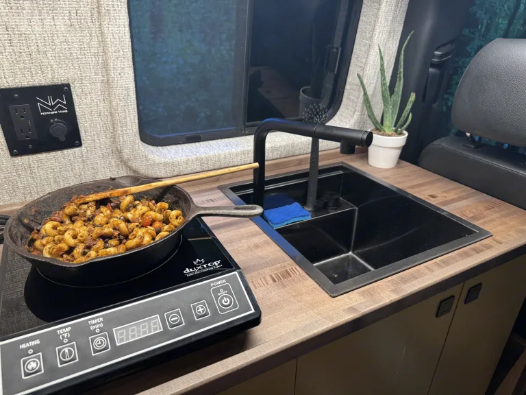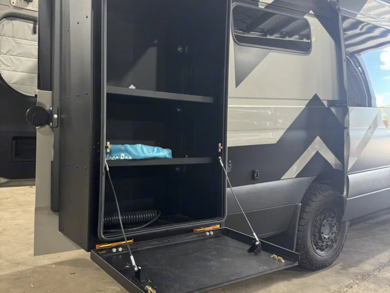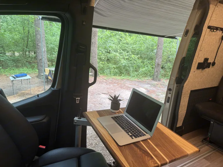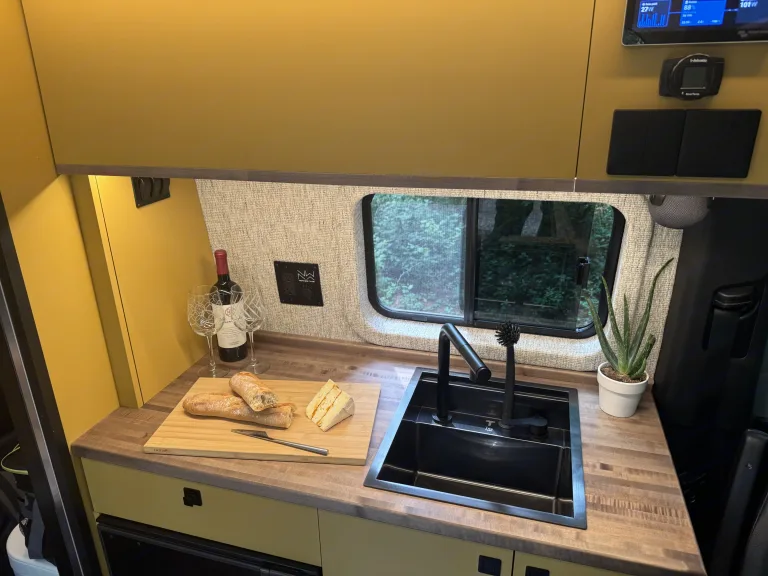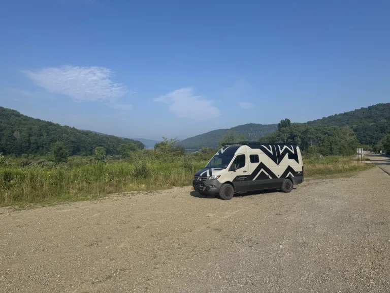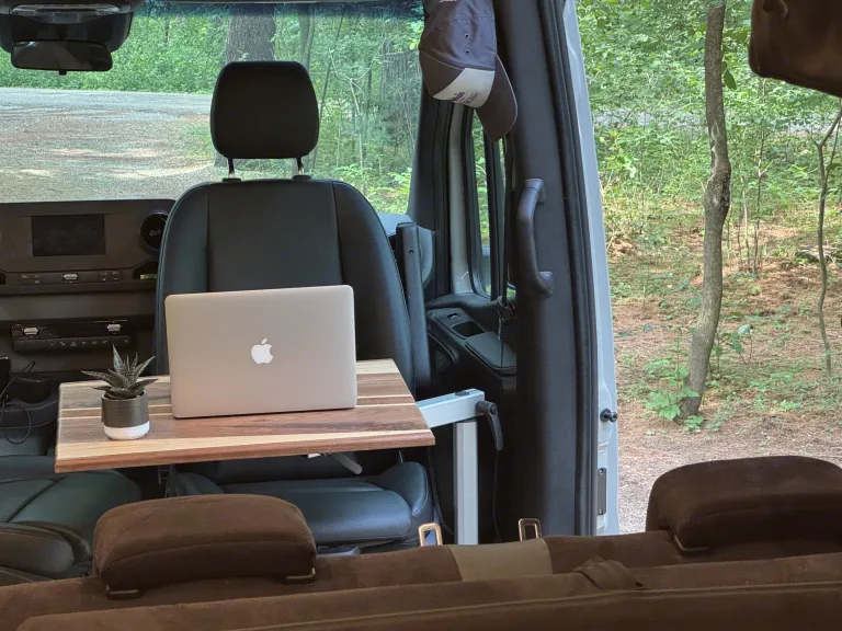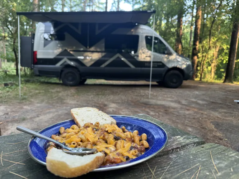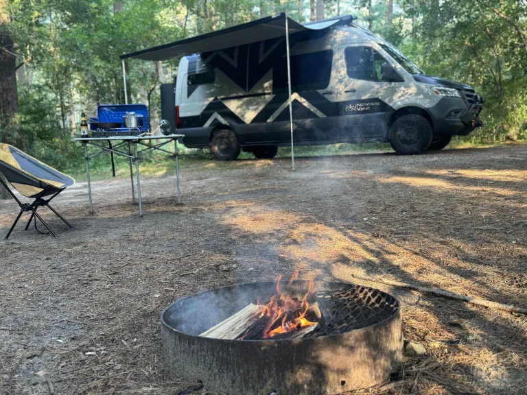 "NoWhere Vans Huron" was custom made by NoWhere Vans in Elkhorn, Wisconsin as their demo van so it includes every feature they offer in a custom van.The Huron seats 4 with certified seatbelts and sleeps 4 on one queen-size powered-lift bed and one double-size bed that transforms from the rear seat. The queen size bed has a front to back orientation instead of across that accommodates taller people. There are magnetic window coverings for all the windows, including the front windshield and cab windows for complete privacy.There is a built-in shower with hot water and composting toilet which eliminates the smell and the hassle of emptying a sewage tank. The water system includes a 20-gallon fresh water tank and a 15-gallon grey water tank.The kitchen area has a convection cooktop that stores away for more counter space, a nice sized sink and refrigerator, and lots of storage. The fronts seats swivel around and the back seats can move forward to create a cozy dining space for 4 with a reclaimed wood table top.The Huron has a fantastic solar/battery system that powers the rooftop AC, LED lighting, AC power outlets, USB power outlets, and roof vent fan. The solar system is backed up by a shore power connection and also charges off the engine while you're driving. There is a central control screen that shows the battery power status, tank levels, and more. The Webasto heater keeps the van warm on cold days or nights and runs off the diesel fuel tank. A WeBoost antenna enhances cell signals to keep you connected. The powered awning expands the useable space and includes LED lighting for covered evening activities.The lighted gear area under the lift bed has plenty of room for your gear and built-in L-Track to secure everything in place. It can also accommodate 4 bikes (ask for the bike mounts when renting) or bring your own 2" hitch mounted bike rack. Additional gear storage is provided in the locking exterior storage box mounted to the passenger side rear door. The van has a built-in air compressor with a quick-connect under the rear bumper and hoses and attachments to pump up your bike tires or stand-up paddle board.The Huron is based on the Mercedes-Benz Sprinter 170 Wheelbase van and comes with Apple Car Play, heated driver's and front passenger's seats, blind spot monitor, driver attention monitor, power folding exterior mirrors, cruise control, and a upgraded audio system by NoWhere Vans. Parking is easy with the 360 degree cameras and proximity sensors to warn you if you're getting close to anything.We'll also provide all the necessities to make your trip great, including kitchen items like plates, bowls, cups, drink ware, pots and pans, utensils, kitchen towels, dish washing supplies, sharp knives, and a coffee machine, bean grinder, and espresso maker! Bed linens, bath towels, toilet paper, and a spare composting material bag for the toilet (just in case). We can also include a two burner camp stove and camp table for outside cooking only (just ask when renting).When you rent from us, we'll provide a full orientation session before you start your adventure. Other things to noteNo smoking inside the van, please and thank you!