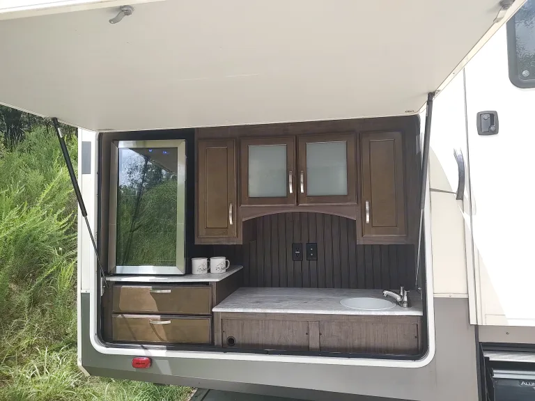 This is a 2 bedroom/2 bath luxury unit with outdoor kitchen, full bunk room, king size bed in master bedroom and all the amenities to make you feel right at home! Comes with everything you need, just bring your suitcase. This RV is for delivery and pick-up only. We offer this within 40 miles.Camping on Lake Hartwell? Ask about our 22' Pontoon boat rental (see photo) or add on kayak rentals or other adventure/camping items all provided for a flat fee each booking: