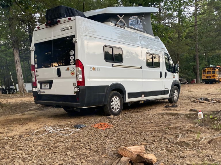 BeaVan 2.0 is a 2021 Winnebago Solis 59PX camper van (Class B). Fully equipped with sleeping room for 4. Two full-size beds (one Murphy in rear and one in the PopTop), roof mounted AC, Truma gas heater, generator, roof mounted solar panels, 30amp plug(cable included), cassette toilet, shower, kitchen sink, fridge, and two stovetop gas burners. There is plenty of storage for your adventures. There is a rear gear garage. There are latching cabinets to put your stuff into and the fridge holds a lot more than meets the eye. This van is easy to drive, visibility is good, and the ride is smooth. Drives great at highway speeds and plenty of power to climb hills. Has V6 gas engine and gets great gas milage. The two front seats swivel around (when you're parked) to face the two back seats and there's a stow-away table you can set up between the two. It's perfect for breakfast by the river or a home office on the go. The main side door that you'll use when you are parked has a wonderful magnetic screen door that keeps bugs out but is easy to move through. The back doors open wide and also have a screen and a bar you can place between them which serves as an outdoor shower curtain, a tarp for privacy, a hanging rod for wet clothes etc. Yes, there are 2 showers! 1 inside and 1 that can be set up in the rear. We've love this van and know you will too!What's includedFresh sheets for both beds, camp chairs, camp table, cookware, plates/utensils, percolator coffee pot, TP, black tank chemical pods, paper towels, trash can, 30amp cable, 30amp surge protector(must use), RecommendationsNorthwest Arkansas and the Ozark Mountains are full of great adventures. The Buffalo National River gets its start here in the Ozarks, offering plenty of fishing, floating and other recreational fun. Charming mountain towns dot the area and offer uncommon shopping and dining experiences. Northwest Arkansas has more than 250 miles of top-tier mountain bike trails, offering cyclists one of the best singletrack experiences in the nation. Northwest Arkansas is a great time for everyone.