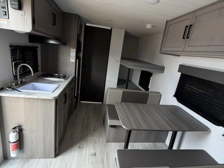 • Sleeps up to 5 – Queen bed, double rear bunks & convertible dinette