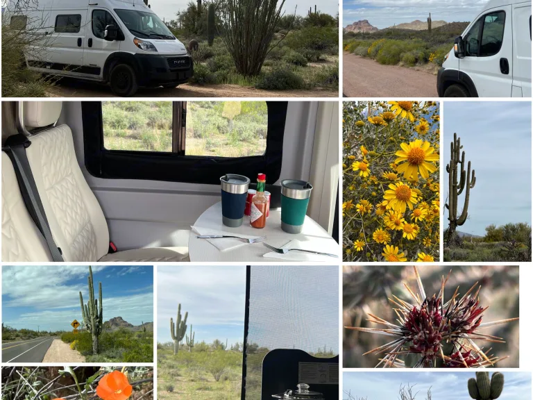 We provide you the opportunity to have a worry free trip! Please clean up any big spills and make sure all trash is secured in a trash bag and we will help you leave no trace by disposing of trash and recycling. The toilet cassette must be emptied as soon as it turns red to continue using it. Failure to do so will result in extra cleaning fees (it’s designed to overflow into the cassette closet when it’s over filled, so please don’t over fill it!) but returning it empty is not necessary! You pick it up with a full tank of gas but there is no need to return it full! Bring it back at any level above 1/4 of a tank. Pick up and drop off times are flexible, let’s chat!Soak in your adventure right up until the last possible moment.
