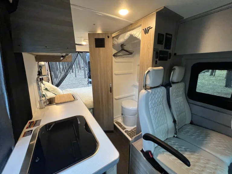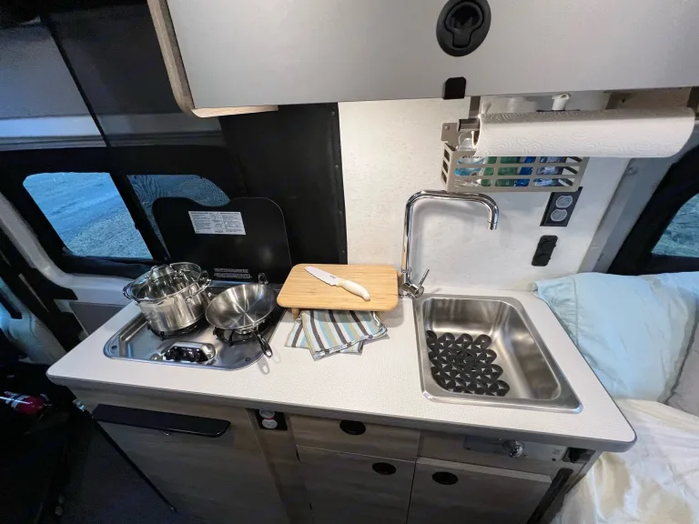 Van is fully gassed up, full water tank (24gals) and propane will be at 2/3 tank or more when you pick it up! Best part is that you just bring it back with without worrying about refilling anything, but please don’t let gas get too far below 1/4 tank.Bedding: Fresh linens for the each sleeping area including sheets, plush comforter, and two pillows. (Two sets total)Dishcloths and dish towelsKitchen: cooking pot, skillet, griddle, kettle, percolator, utensils, oven mitts, cutlery and meal ware for four, cutting board, sharp knife, scissors, lighter, can/bottle/wine openers, s’mores sticks, paper towels, aluminum foil.Basic cleaning supplies including dish soap, disinfectant spray/wipes, trash bags, paper towels, compact broom/dust pan.First Aid Kit to keep you safe.Assortment of games including playing cards and road trip bingo to keep you having fun.Cassette Toilet + TPShower Toiletries2 large cotton Turkish towels for showering (can include 2 more upon request)2 compact camp chairsWeBoost for keeping connected, even though you shouldn'tWindow shades for privacy & temperature efficiency.Van SPECS:
