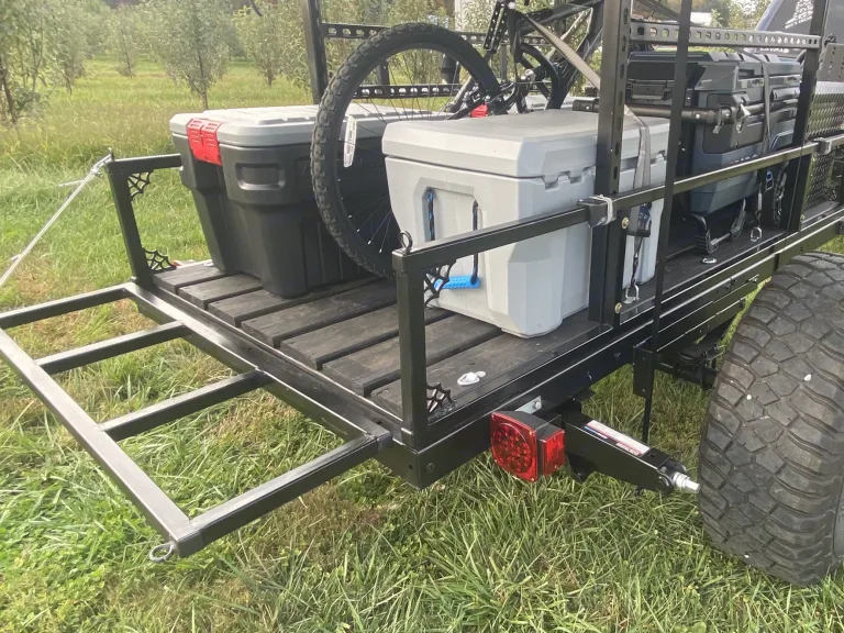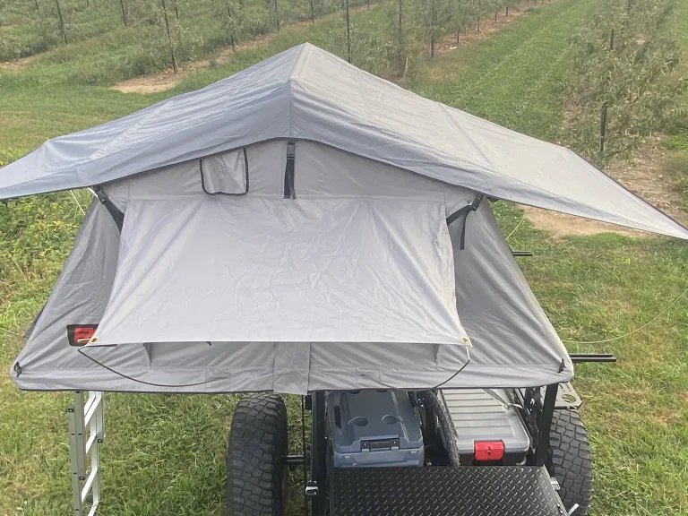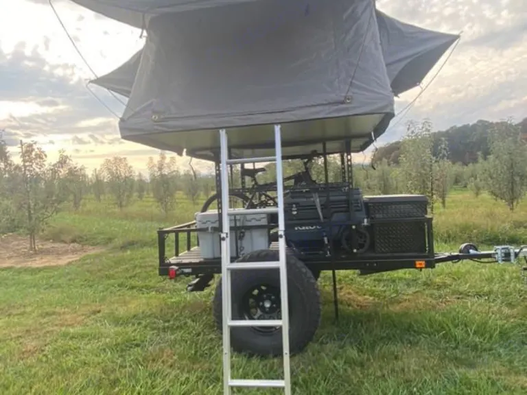 We built our overland trailer to take our daughter camping. We thought it's too much fun not to share it. Towing the trailer is easy due to it weighing a little over 1000lbs. It's 12.5 ft long from tongue to rear so you can fit anywhere. There's so much storage in the trailer you can bring everything you need to camp for a longer period of time. It's perfect for parents with smaller children and single parents. 2 full adults and a child sleep comfortably. If your in a campground we include a tv to hook to thee cable to make your stay more enjoyable. There's also a 2" foam mattress to make sleeping comfortable. We include sleeping bags if you want or just bring your own bedding. The tent has a moon roof for staring at the stars on pretty nights . The trailer comes with 2 coolers and 2 storage bins for all your stuff and food. It also includes a propane camp stove and cooking supplies. Theres a fold down table on the side for cooking and the tailgate makes a table. It's on 35" tires but we have smaller tires if your car or truck is smaller. It has a 4 pin connector for lights and a 1 7/8" ball for towing. You'll feel like your sleeping in a treehouse .Feel free to contact me with any questions What's includedCamping chairs x 2,propane stove,cooking gear,battery(if off grid) tv if at campground, 2 coolers,2 storage binsRecommendationsWe've been from Myrtle Beach SC to Pigeon Forge Tennessee Other things to noteWe just as for no smoking and no fires too close to the tent please