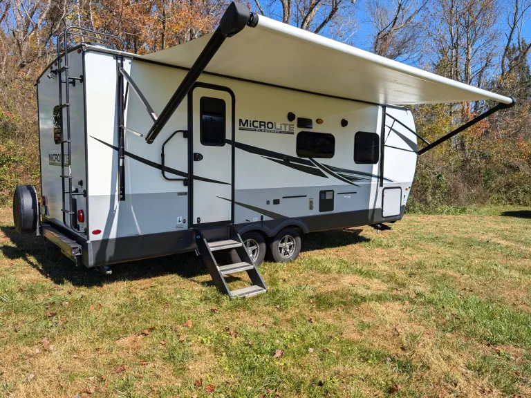 This little trailer is under 6000lbs so it's easy to tow for a romantic getaway or for a family with small kids.Pet friendly with a pull out couch that can fit a couple kids.There's also an outdoor griddle under the awning for cooking in any weather.The bedroom has a comfy queen size bed and plenty of storage for clothes.Full size fridge and stocked kitchen for cooking, comfy couch and a faux fireplace under the TV.The bathroom is spacious so there's plenty of room and you're not standing over the toilet to get dressed or use the sink.It's like new and super comfy, we know you'll have a great experience!We can also handle delivery and setup for you so you just drive up and unpack, then we pick it up when you're done.It's our goal to make sure you have an amazing trip and we will take care of everything!