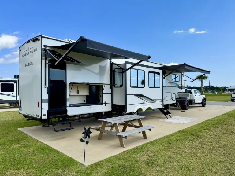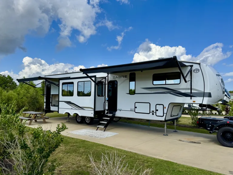 2025 Sabre 38DBL by Forest River – Sleeps 7Looking for the perfect getaway? Our 2025 Sabre 38DBL, a stationary 5th-wheel unit, is located in the beautiful Grand Riviera RV Resort and offers the ultimate combination of luxury, convenience, and relaxation.RV Features:Spacious & Comfortable: 2 bedrooms + loft with an open floor plan, ideal for families or small groups.