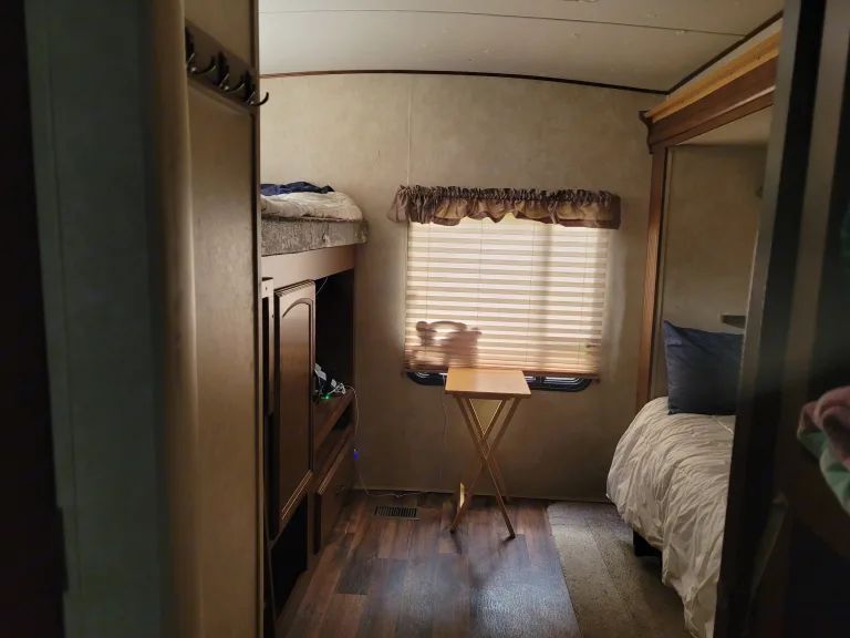 **Room for Everyone – Sleeps up to 9 people with a private bunkhouse for the kids, a private room with a comfortable queen bed for the adults, and a convertible dinette & sofa.
