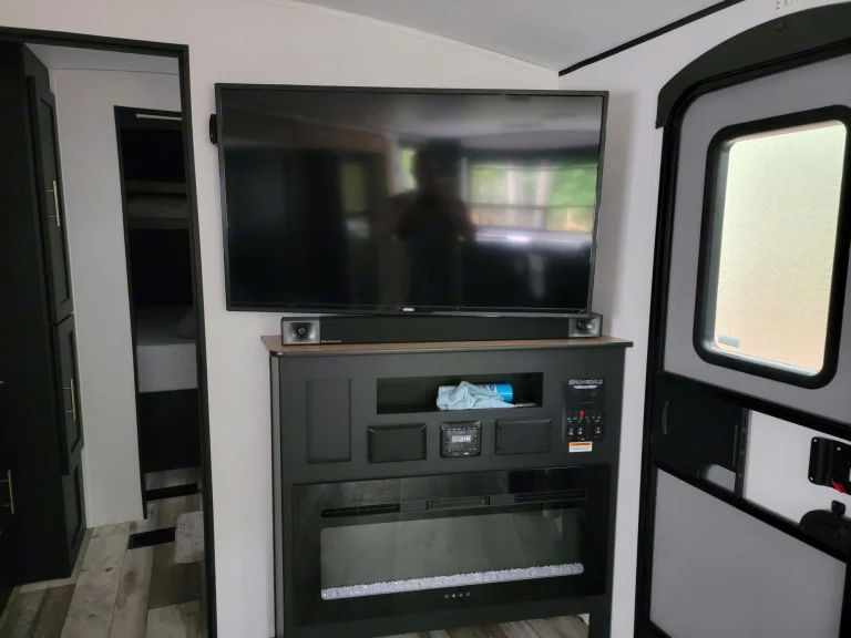 Such a great rear kitchen unit. Is Brand NEW and super open. With 2 slides at the rear, it makes the living room/dining room/Kitchen feel huge. A private bedroom gives you privacy from the rest of the rig. A full bath with an outdoor option as well. Tv can easily be moved from the living room to the outside under the Awning. Many upgrades including a memory foam mattress. Tv in the bedroom as well. Both TV's have Roku. Separate AC units for the living area and Bedroom. Tankless water heater. Has 2 grey water tanks and 1 blackwater. Also has a separate drinking water tank. Awning has LED lights under it. What's includedFresh Linens including Towels. 3 Artificial turf roll outs (10x10)