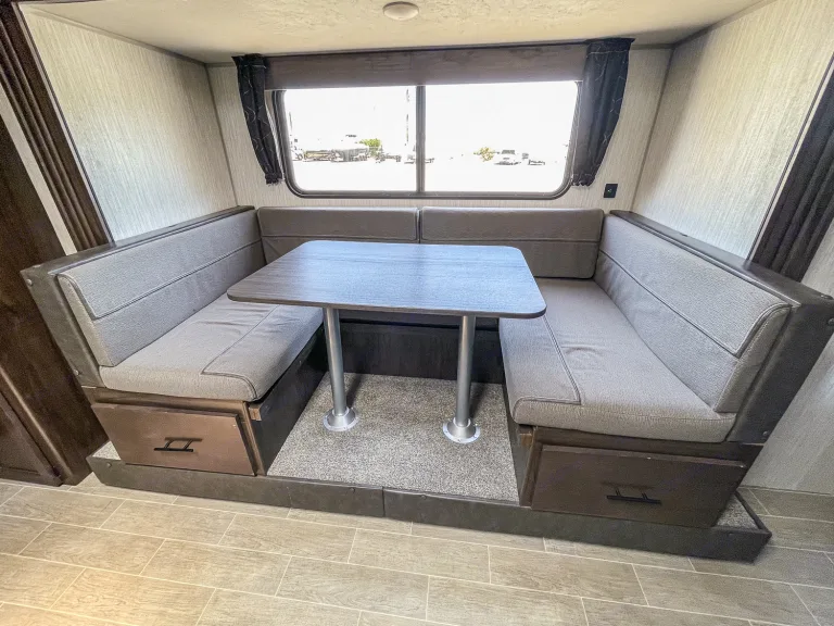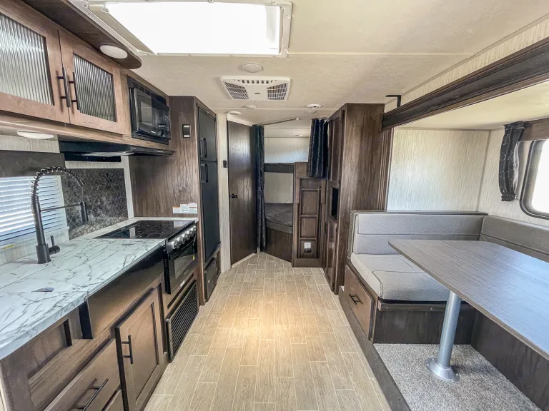- Linens/pillows for the queen bed and bunk beds (you'll have to bring a sleeping bag for the dinette)