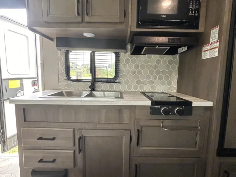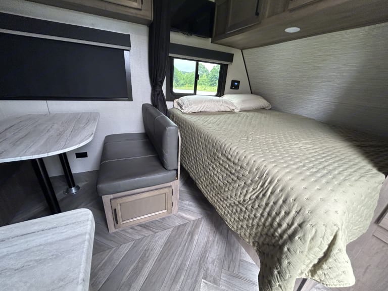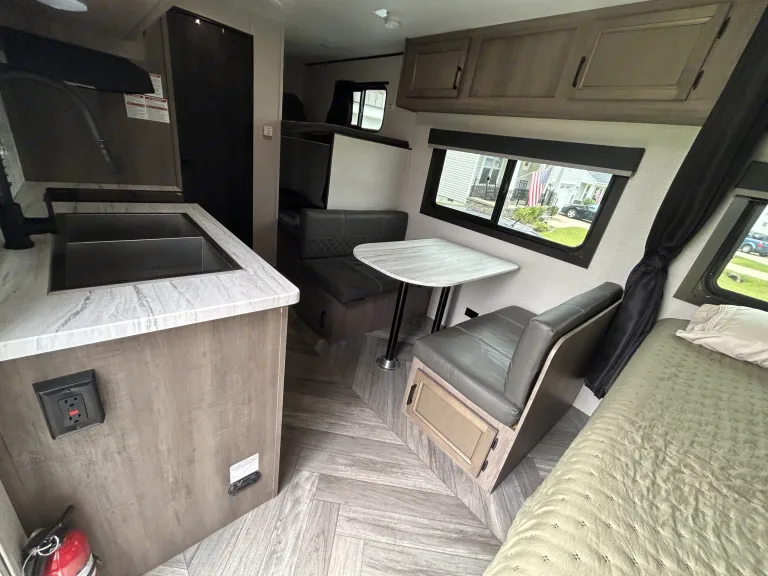 Modern Amenities: From the fully equipped kitchenette (Freezer, Refrigerator, dual stove top, and microwave) to the cozy dinette area, every inch of the interior is designed for convenience and comfort. Stay connected with USB charging ports and keep cool with the efficient air conditioning system.