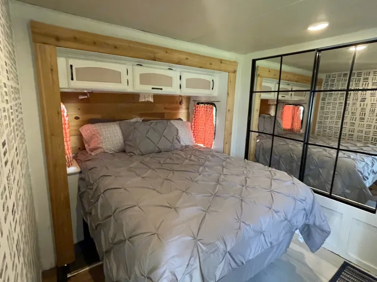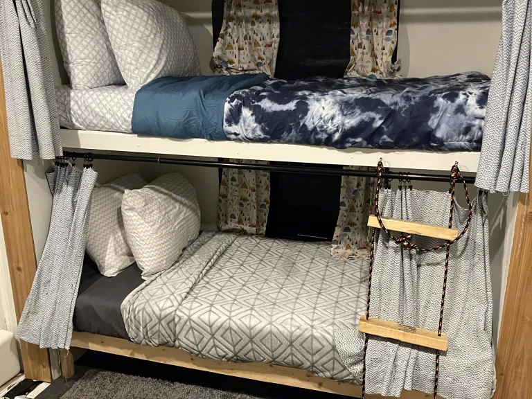 Sleeping arrangements are comfortable, with a king-sized bed in the master bedroom, bunk beds in the bunkhouse, and a convertible sofa in the living area. And with two full bathrooms, there's plenty of convenience and privacy for everyone in the RV.