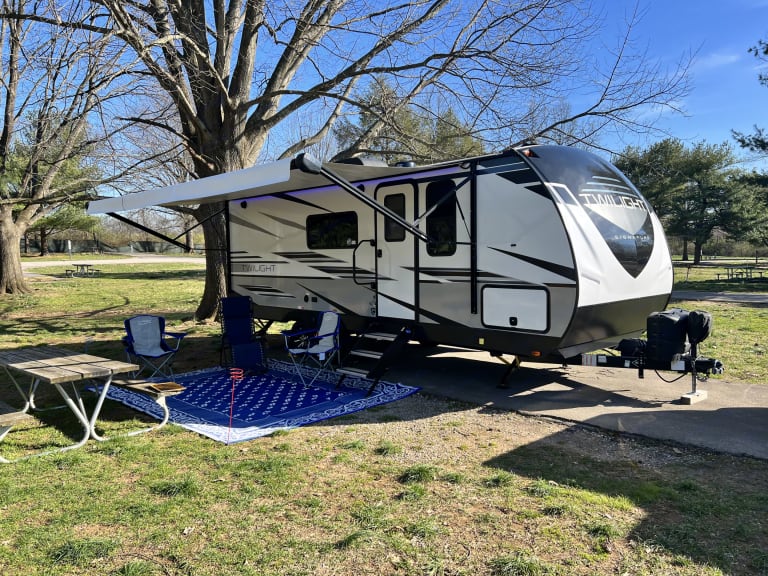 This is a 2022 Cruise Twilight with a wonderful open floor plan that is very warm and inviting. Awning outside is lit with a led light and steps are back lit. Outdoor rug and comfortable chairs to set around the evening fire enjoying making memories with friends and family. Then retreat to the comfortable inside accommodations to rest up for your next days adventures.What's includedOutdoor rug