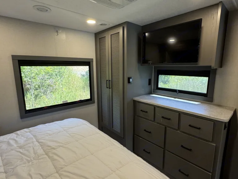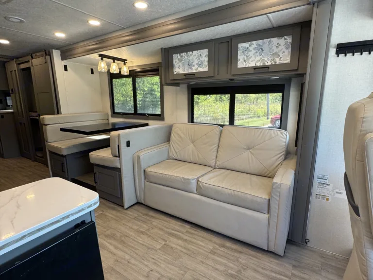 Hi everyone! I’m a 2025 class A, and I’m ready to take you, your family, and your friends on the road trip of a lifetime! I’ve got a private king bedroom in the back, a drop‑down overhead bunk up front, a versatile bunk/office/wardrobe space, a comfy sofa that turns into a bed, and a booth dinette that also converts—so I can sleep up to 9 happy travelers!I’ve got a full bathroom with a shower and skylight, a kitchen with a 3‑burner stove, oven, microwave, and full‑size fridge, plus plenty of counter space for cooking up your favorites. Want to relax after a day of exploring? I’ve got three TVs—one in the living area, one in the bedroom, and even one outside under my 17' power awning for movie nights or game days under the stars.With my powerful Ford 7.3L V8 engine, automatic leveling jacks, and two slide‑outs, I’m as easy to drive as I am to love. I’ve got loads of storage inside and out for all your gear, plus an exterior propane hookup for grilling on the go.Delivery is available for a fee—my awesome owner will set me up, walk you through how to use everything, and can even help you book a campsite if you’d like. All that’s missing is you, your crew, and your sense of adventure.