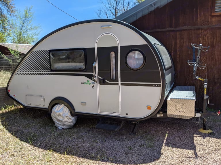 - 10.2 kwh of lifepo4 lithium battery storage allowing 6 straight hours of off grid air condition without a generator. In moderate weather without the air conditioning it will last several days or you can plug-in at a friends house, campground, or run the generator to refill the batteries in a few hours and boondock again for several days. Or add additional solar panels and never plug in to anything.What's includedRental includes fresh linens, pots, pans, plates, cups, utensils, toaster, microwave, blender, four camp chairs, electric drill for dropping stabilizers, awning, equipment for draining/filling tanks, and blocks for stopping or leveling the tires. Honda 2200i generator is optional.RecommendationsThis trailer isn't designed for off-road overlanding. Please stick to paved or smooth gravel roads. A trailer is still a house on wheels so stuff moves and bounces around during transit, plan accordingly. The weight of the trailer full of water, with the bike rack (empty of bikes), and with the generator is about 3000 lbs and a tongue weight of 500 lbs. Please add the weight of your bikes to the tongue to verify sufficient tongue weight capacity of your tow vehicle.Other things to noteDriving a trailer is a unique experience even when it is a large lite-weight teardrop trailer. If you turn your tow vehicle hard right the trailer front end swings hard left and its tail swings hard right and vice versa. Many people forget this and turn hard coming out of a gas pump and actually clip the pump barriers. Not fun. Additionally, the trailer cuts corners closer than the tow vehicle. Its best that you be very careful, have a spotter (or two) when backing up, allow plenty of space all the way around the trailer, and have experience in towing a travel trailer before renting one. Additionally, its handy to watch a few videos on travel trailer driving mistakes online before attempting a trailer rental.