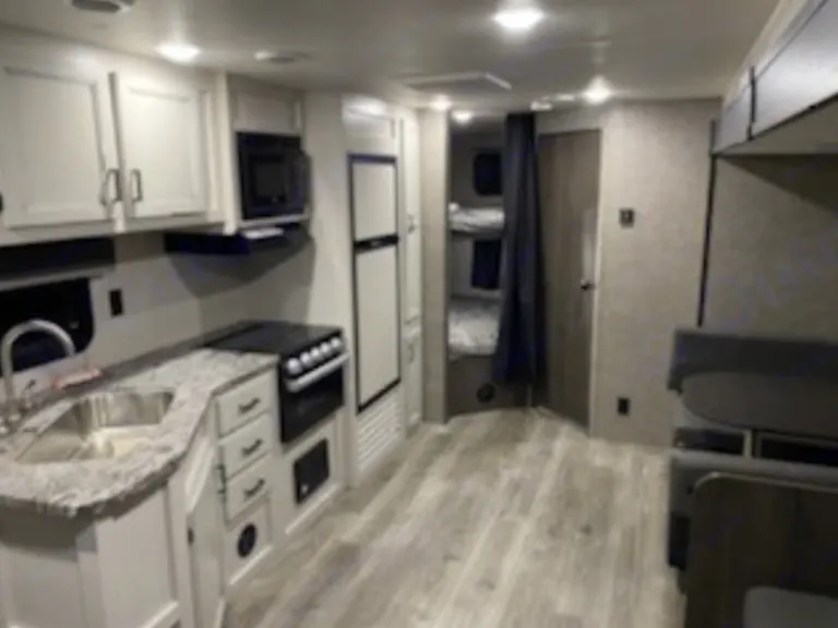 Come enjoy our spacious RV! This 30 ft bunkhouse is perfect for families or a group of friends! It will easily sleep 8 comfortably but 10 is possible if sharing beds isn't an issue. Our RV comes fully stocked with kitchenware, bedding, and 4 camping chairs. It has a queen-size mattress in the master bedroom, full-size bunk beds in the rear, and the sofa and dinette both convert into full-size beds. It has one large slide-out that really opens up the living space. The trailer weighs in at just under 5800 lbs (dry weight) so can be pulled by a 1/2-ton truck or SUV.What's includedFresh linens, kitchen utensils, pots, pans, silverware, cups, plates, bowls, towels. Also includes 4 camping chairs and everything needed to utilize electric, water, and sewer hookups. Other things to noteNo smoking