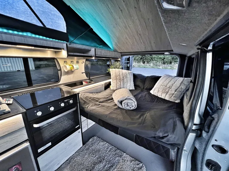Meet Van Damme – Our Pet-Friendly PowerhouseVan Damme isn’t just a camper – he’s your trusty adventure sidekick. Sleek, comfy, and ready for anything, this brand-new automatic beauty is kitted out with everything you need to explore in style. Oh, and yes… your furry friend can come too (just one dog, though – Van Damme likes to keep things civil).Sleep Like a Dream