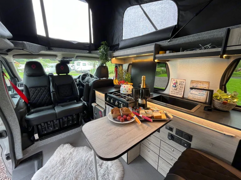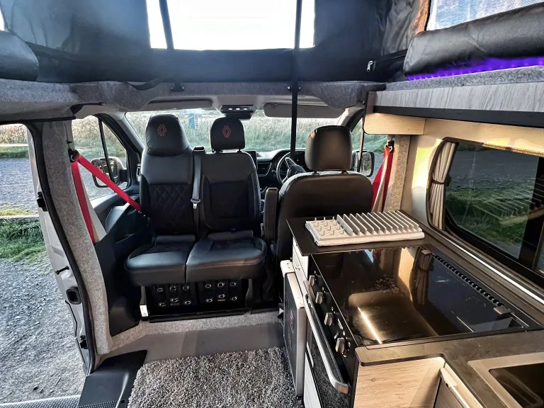 The newest legend in the Jolly Campers family, Van Damme is all about premium comfort wrapped in a sleek, adventure-ready package. Packed with tech, cosy bedding, and clever design – he’s the kind of van that makes you want to keep driving just to see what’s around the next bend.Extras