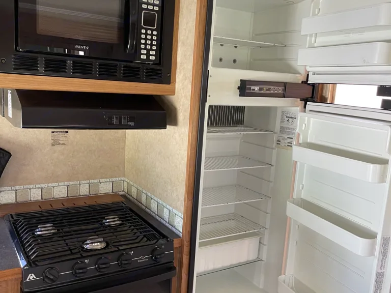 Microwave, conventional oven, cooking stove, fridge with both cooling and freezer, AC and heating system, only 250 hrs used Onan generator.