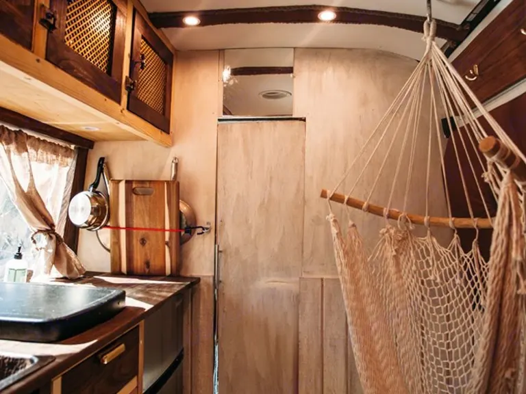 My extremely cozy hand crafted sprinter van feels luscious and luxurious to cozily sleep parked next to some of the most beautiful places on earth, with all the comforts of home. Solar powered, and a generator to power AC. Sleeping beneath a copper roof and leather headboards feels like a dream. Modeled after the beautiful vintage airstream of the 60’s, I want you to enjoy the van which I’ve taken on tour across North America 10 times in the same way that I have and still do.