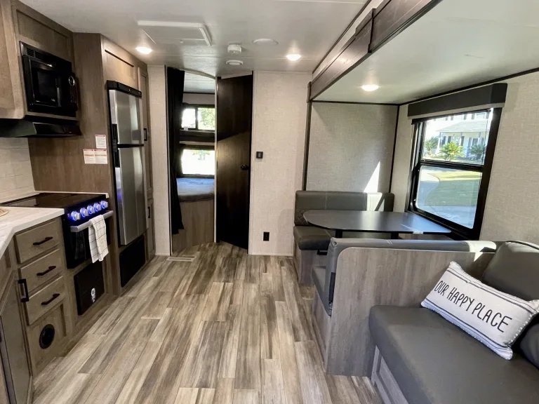 We are pleased to be able to offer this beautiful space for your next adventure! This 2023 StarCraft Autumn Ridge connects adventurous outdoor camping with a touch of modern living. This travel trailer has plenty of space for the whole family sleeping with queen size main bed, bunk beds, jack-knife sofa bed, and convertible dinette bed.*Delivery fee is $200 and includes delivery within 75 miles along with all set up/tear down services. This allows you to come and enjoy your time with family in this space without the hassle and work of towing, setting up, and tearing down the camper!Please contact us with any questions you may have! We look forward to helping your next adventure become a reality!What's includedThe camper will come stocked with all the kitchen essentials for cooking, whether that is a full meal from the kitchen or over an open fire. We also provide cleaned and sanitized linens and towels for each rental.