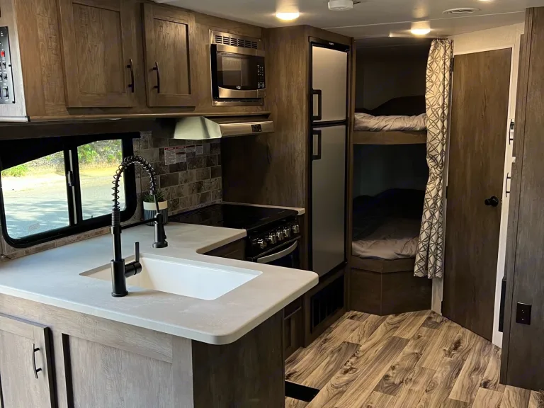 Our 2020 Forest River Sonoma is light enough to tow with a half ton pickup + full size SUVs. It has plenty of space for family & friends and is great for kids too. Pet friendly, because pets are family too!There is a Queen size mattress in the private bedroom, 2 full size bunks, and the dinette table converts to a bed also. You can find a mounted smart TV in the main living space for all your streaming need// can be used if you have Wi-Fi access.The RV is fully stocked with everything you need to get out and enjoy the outdoors!