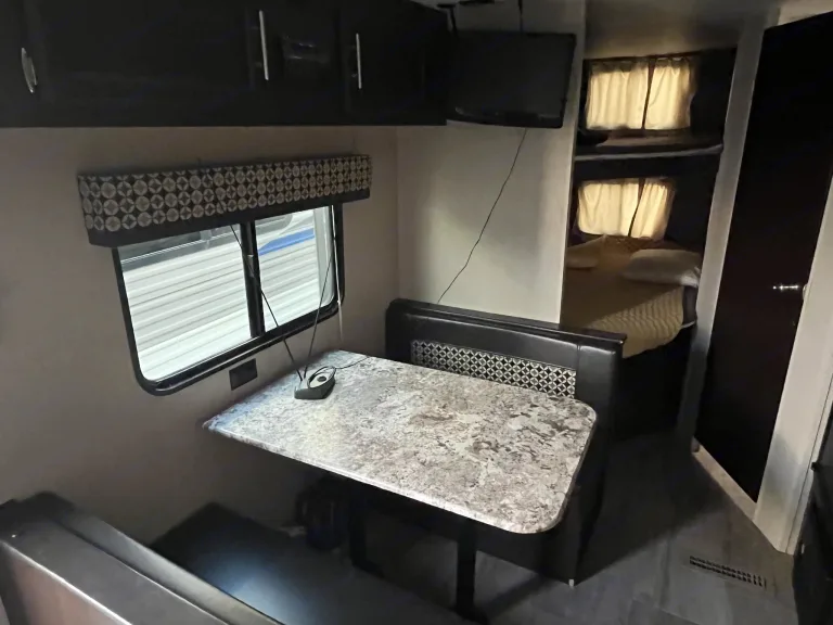 2018 Sportsman KZ with a comfortable bed in the private parent room along with full over full bunk beds, and a convertible table and couch. Vented AC and Heat, both controlled with a thermostat. Electric awning. Indoor and outdoor zoned speakers. Small television with DVD player and local channels on an antenna. Reach out with any questions. Owner will deliver, set up, and pick up.