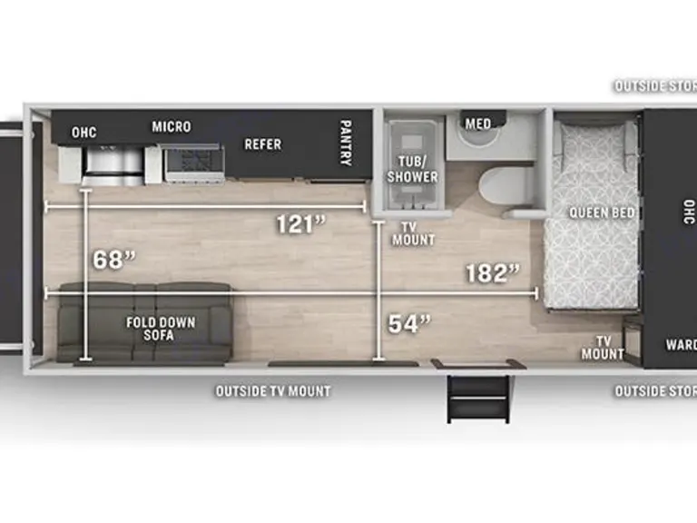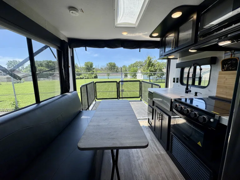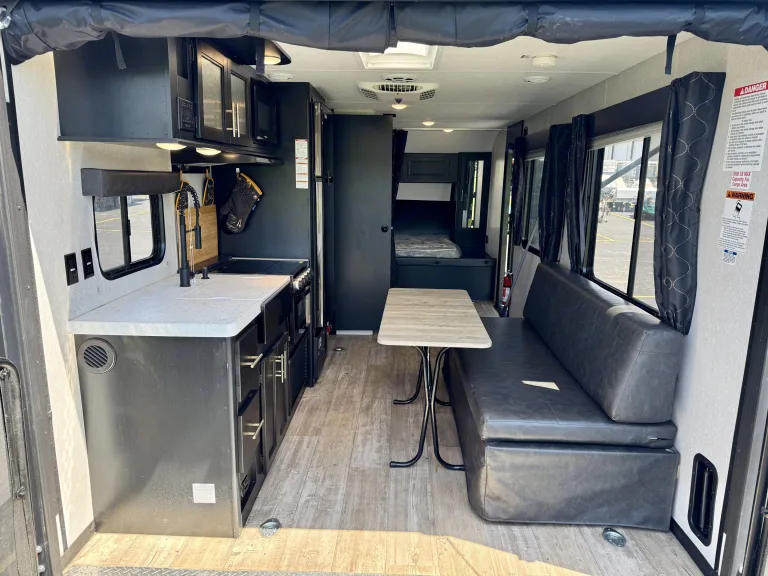 Features a queen bed in the front and dual convertible sofas in the rear. Whether you're traveling solo, with a partner, or bringing a small crew, there’s a cozy spot for everyone.Fully Equipped Kitchen