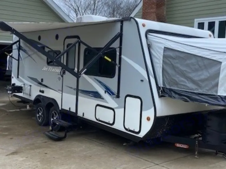 Jayco Jayfeather Ultra Lite has been very well kept and extremely clean hybrid camper. Great for large or extended families. Can sleep up to 9-10 people. The slide adds lots of extra floor space which is great again for large families. Electric awning, awesome upgraded outdoor speakers with Bluetooth radio. USB charging ports, mounted 32” TV included with built in DVD system. Mountable outdoor grill. Additional features listed below.**Brake Controller Required FOR This Rental**Gvwr-6,150 lbs