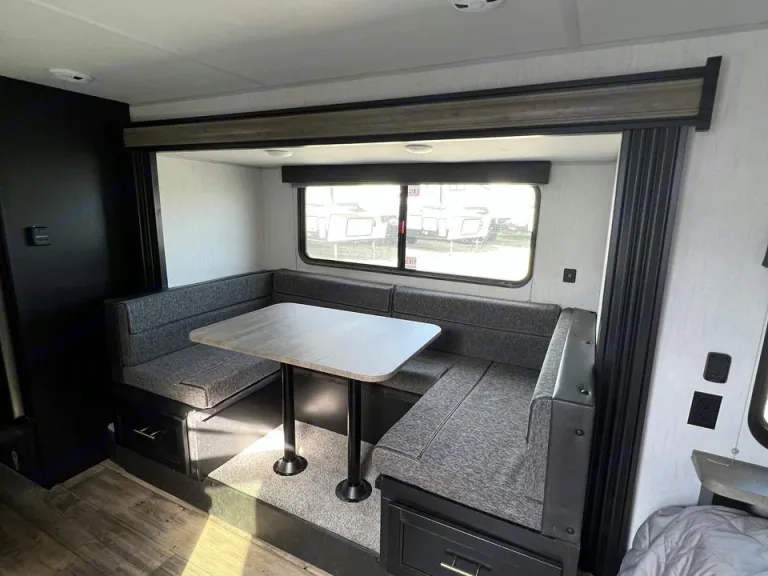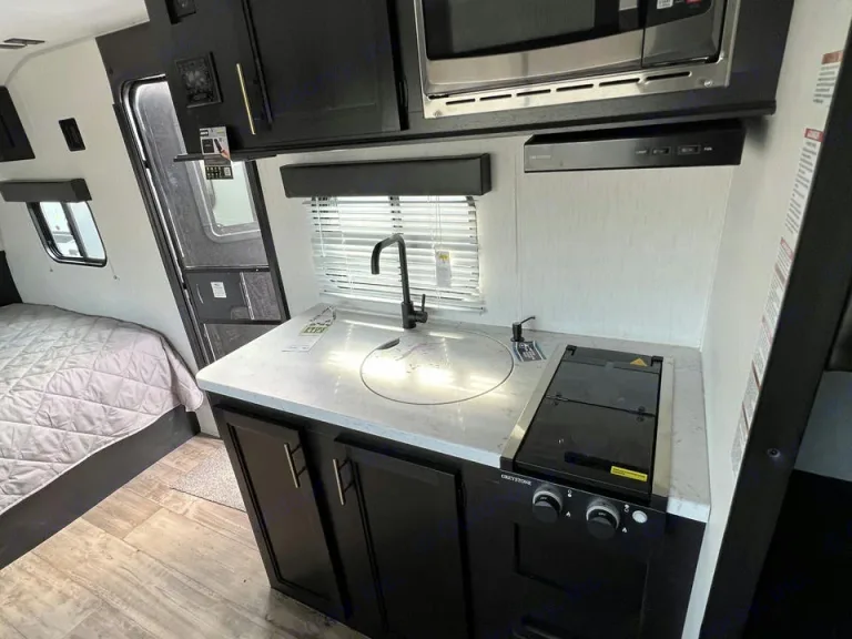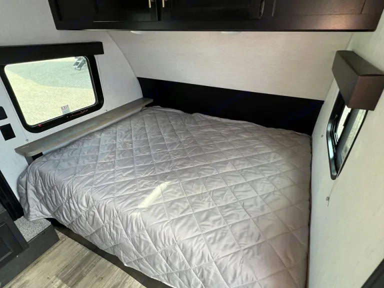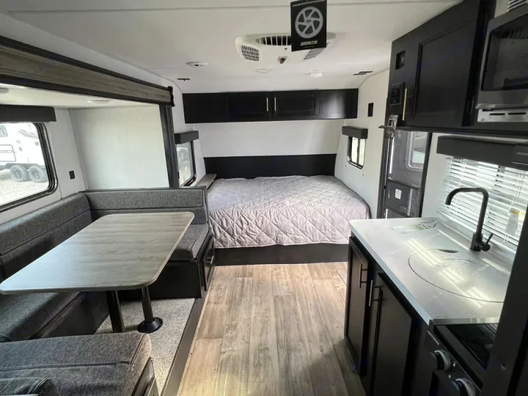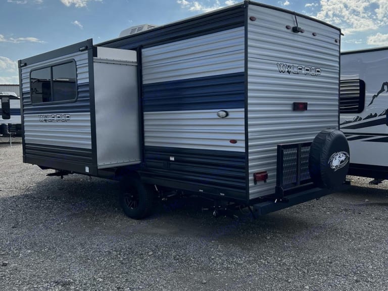 Looking for a comfortable and convenient way to explore the great outdoors with your family or friends? Look no further than the brand new 2022 Forest River Wolf Pup camper, now available for rent!This spacious and well-designed travel trailer sleeps up to 6 people, making it the perfect choice for families or small groups of friends. Measuring just over 23 feet in length and weighing in at around 3,500 pounds, this camper is easy to tow and maneuver on the road, giving you the freedom and flexibility to explore the great outdoors on your own terms.Inside, the Wolf Pup camper features a fully equipped kitchen with a sink, stove, and refrigerator, as well as a dinette that can be converted into a comfortable sleeping space for two. There is also a cozy queen-sized bed with plenty of storage space underneath, as well as a set of bunk beds that are perfect for kids or additional guests.The bathroom in the Wolf Pup is surprisingly spacious for a camper of its size, featuring a toilet, sink, and shower with plenty of headroom. The camper also comes equipped with a number of convenient features, including a Bluetooth-enabled stereo system, USB charging ports, and LED lighting throughout.Outside, the Wolf Pup boasts a sleek and stylish design, with a durable fiberglass exterior and a range of eye-catching graphics to choose from. The camper also features a large awning that provides shade and protection from the elements, as well as an outdoor shower and a handy storage compartment for all your gear.Renting the 2022 Forest River Wolf Pup camper gives you the freedom and flexibility to explore the great outdoors with your family or friends, without having to worry about the hassle and expense of buying and maintaining your own RV. So why wait? Book your rental today and start planning your next adventure!