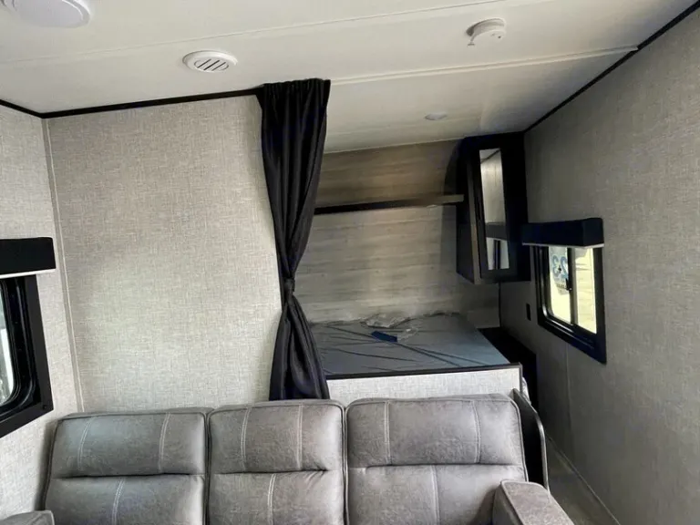 If using for a music festival or tailgating, prior notice and agreement by owner required. Portable generator use only upon request prior to rental. No Smoking and No Pets for Rentals! Bring your kids, your extended family and bring your friends! Just hook up and go! We have everything you need for a great camping trip.What's includedCompletely stocked with dishes, cookware, bedding, and much more. 8 Cubic foot refrigerator/freezer holds groceries for a long weekend. Gas cooktop and microwave inside. Storage spaces have been customized and come with dishes, bowls, cups, cooking pans, and utensils. Queen size bed includes a 2" mattress pad for extra comfort, super soft sheets, a comforter, an extra blanket, and pillows! 4" thick Double bunks with bedding included can easily sleep two kiddos or one adult per bunk. Dinette converts into an extra bed. Jackknife sofa also converts to another bed too! 32” Roku tv in the bedroom with DVD player for your entertainment. Plenty of USB outlets throughout for all your phones and tablets. Bathroom with toilet, shower, and sink- hand towels provided. Some additional accessories include Blackstone gas cooktop, chairs, table and camp mat included. Power awning with led lights, built-in Bluetooth stereo with indoor and outdoor speakers. Other things to noteFestival use allowed only upon Owner agreement prior to rental.No Pets for RentalsNo Use of Awning under Large Trees, Rain or during High Winds. Awning Damage will be on Renter's expense.Blackstone grill available with one small Coleman propane tank provided.Portable Generator only available upon request during booking. Generator Nightly rental Fee is $50 which includes 5 gallons gas can included with rental of Portable Generator. Weekly Rental (7days) is $250. During rental if red gas can empties out, It is upon the renter to notify me (host) via phone or text and for the renter to purchase gas to fill gas can at their own expense.