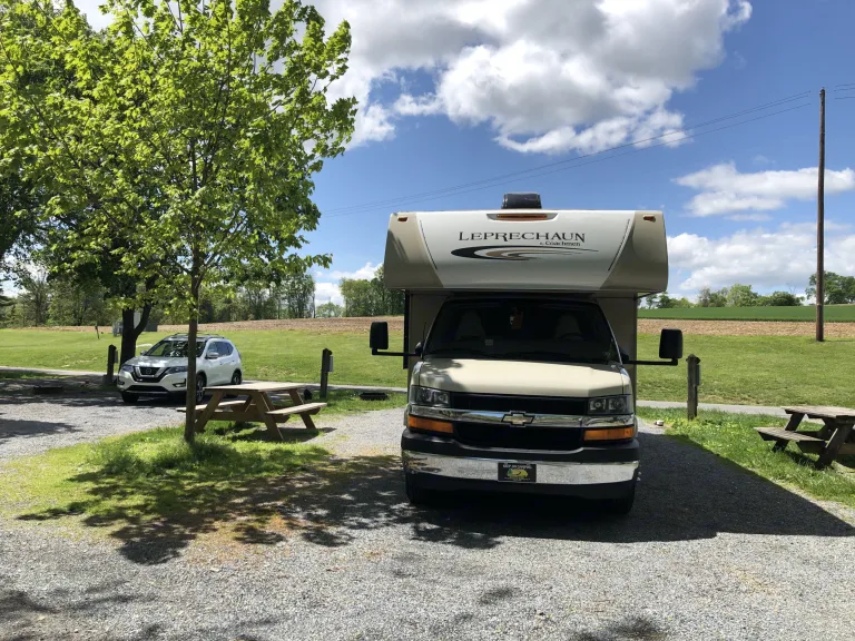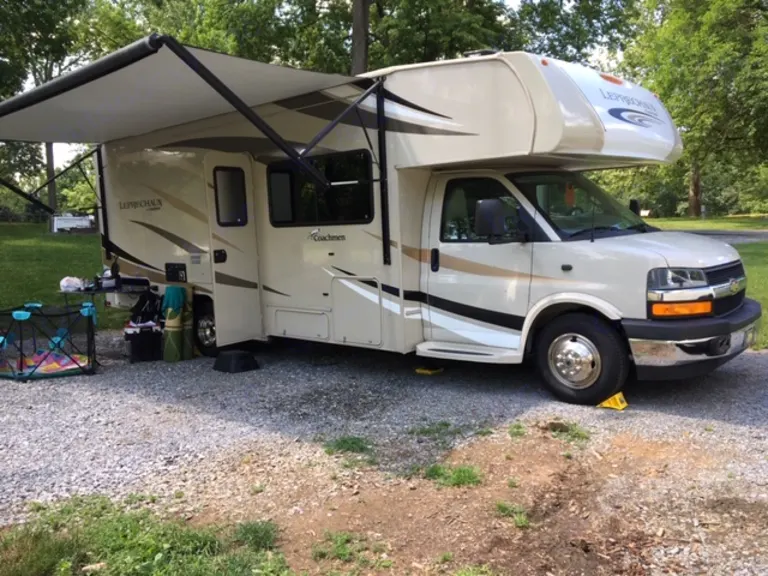 Penn State Football Tailgate/Games, Nascar, Camping, Travels & More! A fabulous Deluxe Open floorplan from Coachman/Forest River, with many add-ons (extra cost) offered by Al & JoAnn creating the most memorable "Glamping" experience. You'll want to come back again and again for PSU and to explore different parts of the Northeast and Southeast on this super comfy luxury coach.Our Coachmen Leprechaun 27'11" has a Queen bed in the rear with an upgraded supreme mattress, a queen space above the cab & 2 full size beds in dinette plus jack-knife sofa, sleeping 6 or 7 depending on adults or kids.The kitchen/pantry is stocked with Keurig coffee maker (we provide some or bring your favorite coffee/tea pods), Dash toaster & Dash mini egg bite-maker to add your quiche/scramble or whatever your morning pleasure might be, whether inside kitchen or on the outside pull-out table & 110 volt plugs to do your bidding. Other surprises await you!JoAnn & Al have traveled the world, both individually and together, in Asia & Europe, and are now creating their bed & breakfast-on-wheels for their renters to enjoy their outdoor experiences.... Later on they plan to add some culinary experiences as well, but for the time being, you will have to be the chefs yourselves. Snacks and small delights you will find, but meal planning will be your job!There are multiple add-ons (extra costs) for your ease-of travel, ranging from bike racks (two different types), pop-up room with mosquito netting for those days/nights that it's needed, Coleman grill, tabletop griddle, linen packages with sheets/blankets & pillows, bathroom sets with supplies, and last, but not least a Garmin 1090 GPS with RV stats to keep you away from low hanging bridges and difficult to navigate roads.Only small/medium dogs up to 35lbs combined permitted on RV, as long as fully housetrained and approved in advance. Additional $350 deposit required, plus $25/daily per dog. No other animals permitted.What's includedAll set-up equipment with handbook/steps plus pics, 6 camping chairs & 3 tables, 10X12 outside mat, 32" & 20" flat screen TVs, DVD, Outside entertainment center, exterior pullout table w/110v plug, EasyPass for traveling in Northeast/Southeast. FULL kitchen service (plasticware, dishes, knives, misc tools, Keurig, toaster, Dash kitchen equipment for breakfast, spices and MORE :)